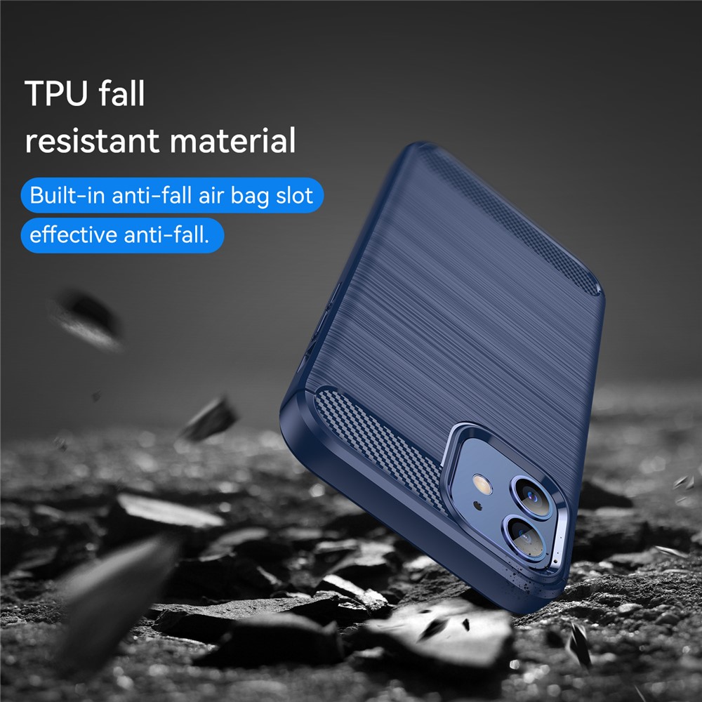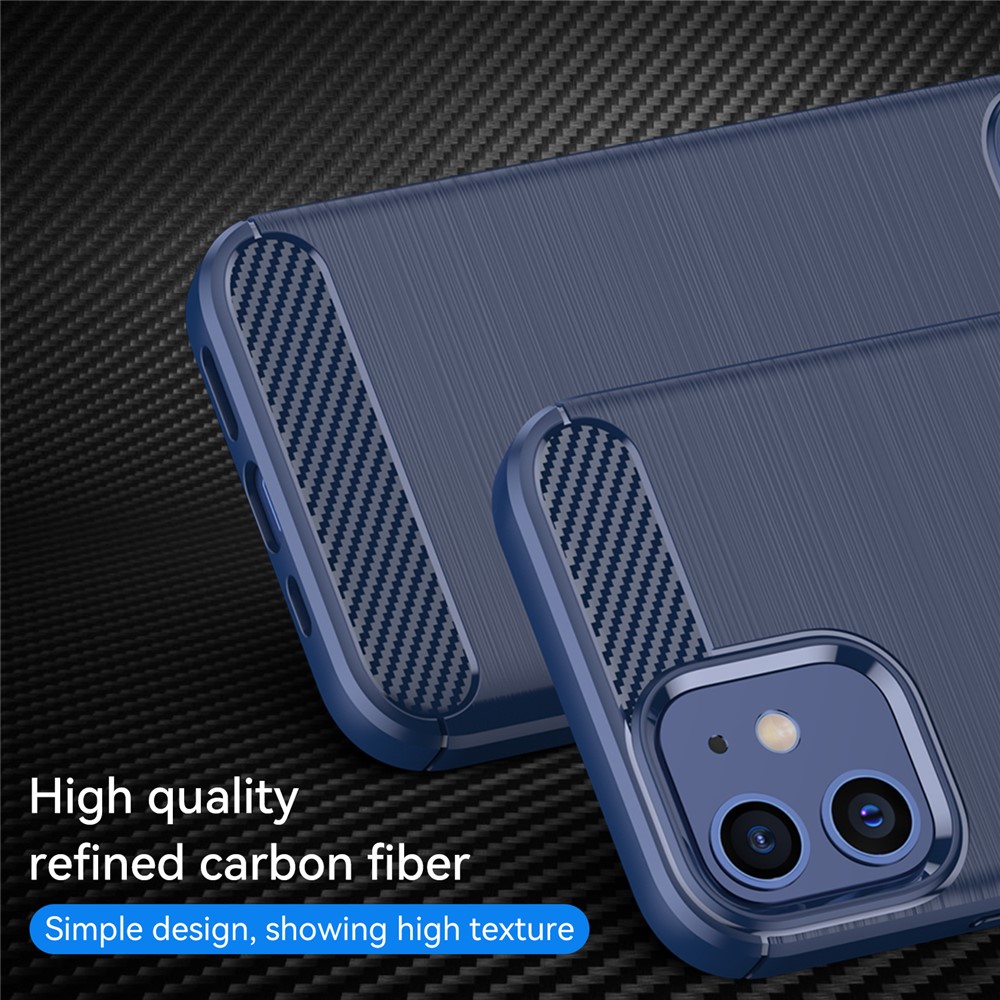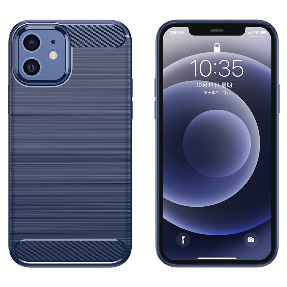1.8mm Carbon Fiber Brushed Texture Heat Dissipation Back Case Flexible TPU Cover for iPhone 12 mini 5.4 inch – Blue