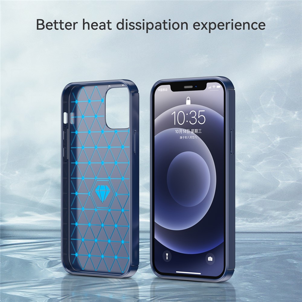 1.8mm Carbon Fiber Brushed Texture Heat Dissipation Back Case Flexible TPU Cover for iPhone 12 mini 5.4 inch - Blue $12.52
