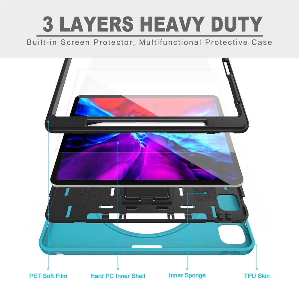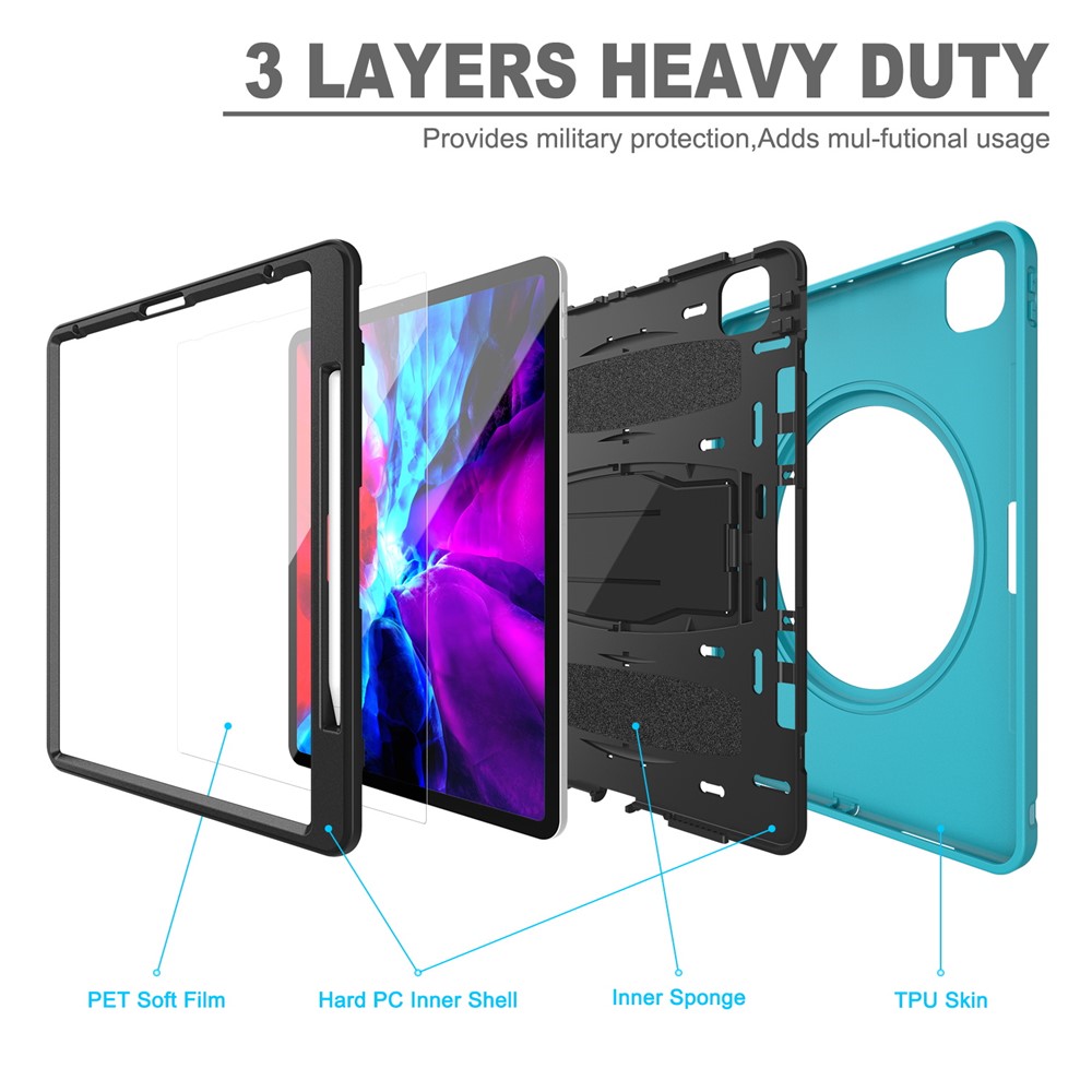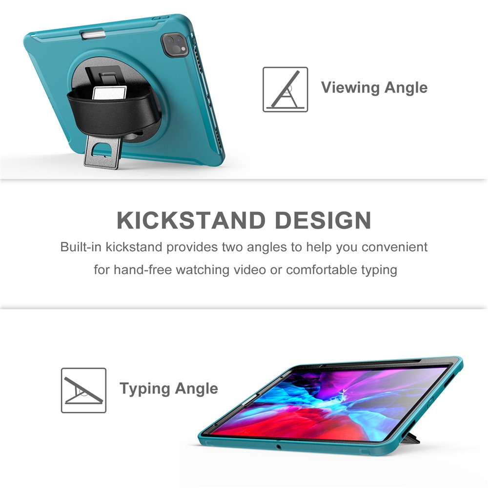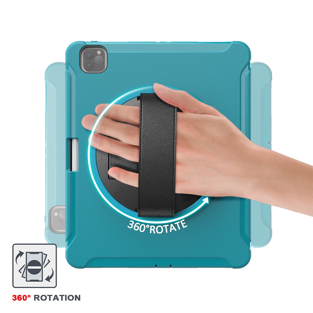 - 360° rotary kickstand with hand band design for easy one-hand holding and operating