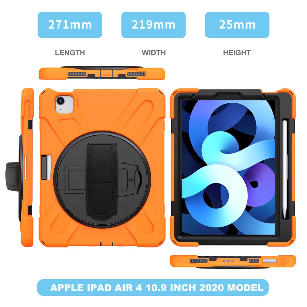 360° Swivel PC + Silicone Combo Kickstand Tablet Shell for iPad Air (2020) / Air (2022) / Pro 11-inch (2022) / (2021) / (2020) / (2018) – Orange