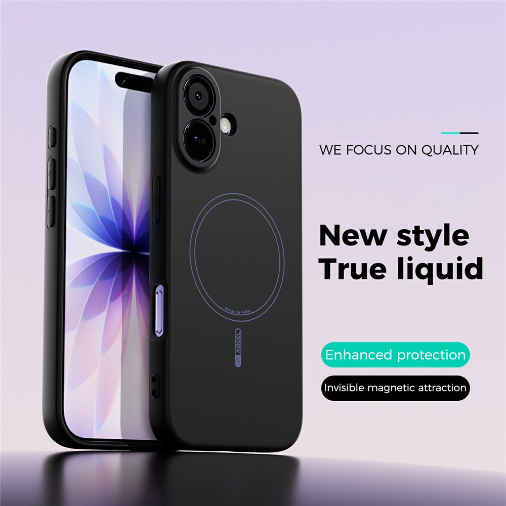 ABEEL For iPhone 17 Case Compatible with MagSafe Skin Touch Liquid Silicone Phone Back Cover - Black