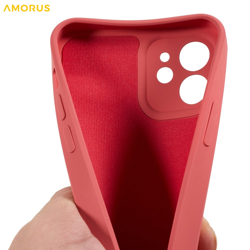 • AMORUS For iPhone 12 Case Precise Cutouts TPU Fiber Lining Shockproof Phone Cover - Red
