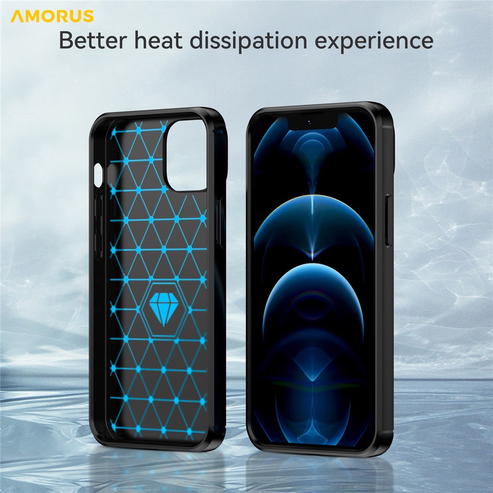 AMORUS For iPhone 13 mini Case Carbon Fiber Texture Brushed Protective Phone Cover - Black