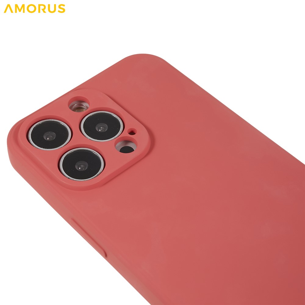 AMORUS For iPhone 13 Pro Case Precise Cutouts TPU Fiber Lining Shockproof Phone Cover - Hawthorn Red