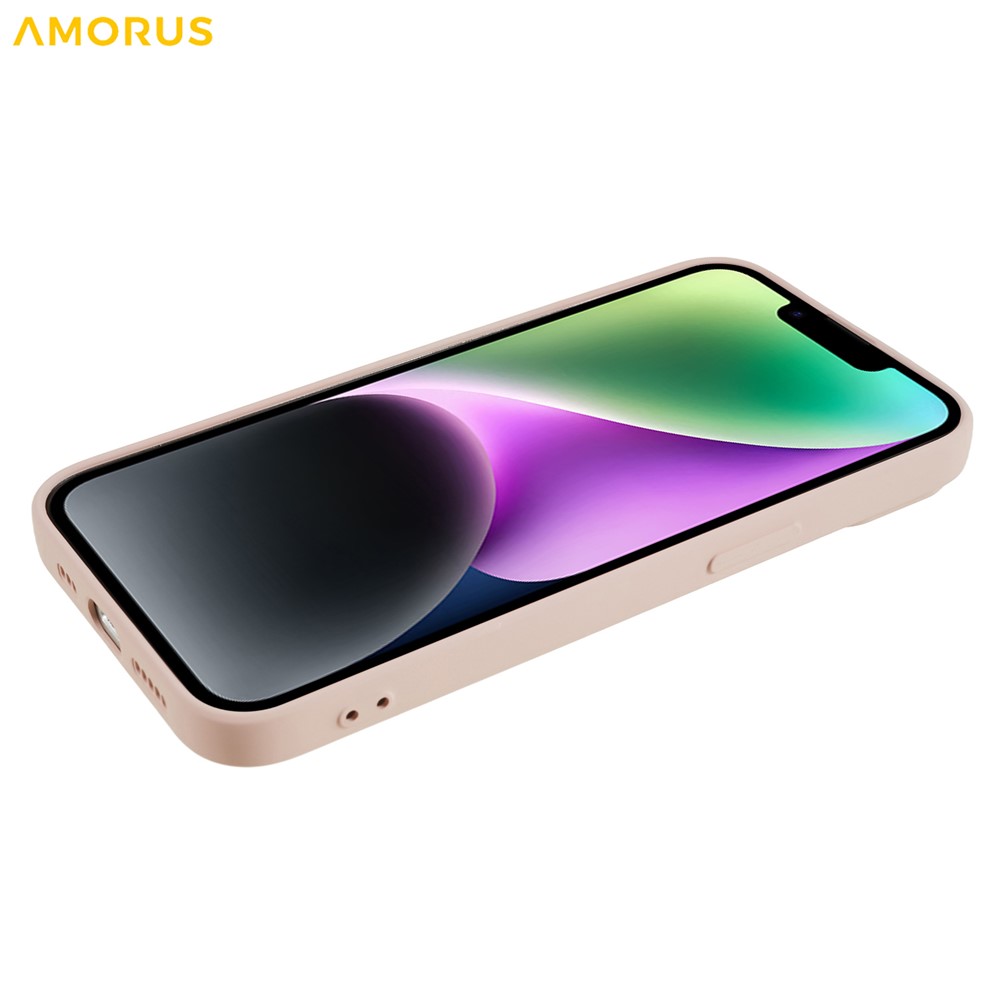 AMORUS For iPhone 14 Plus Case Precise Cutouts TPU Fiber Lining Shockproof Phone Cover – Pink