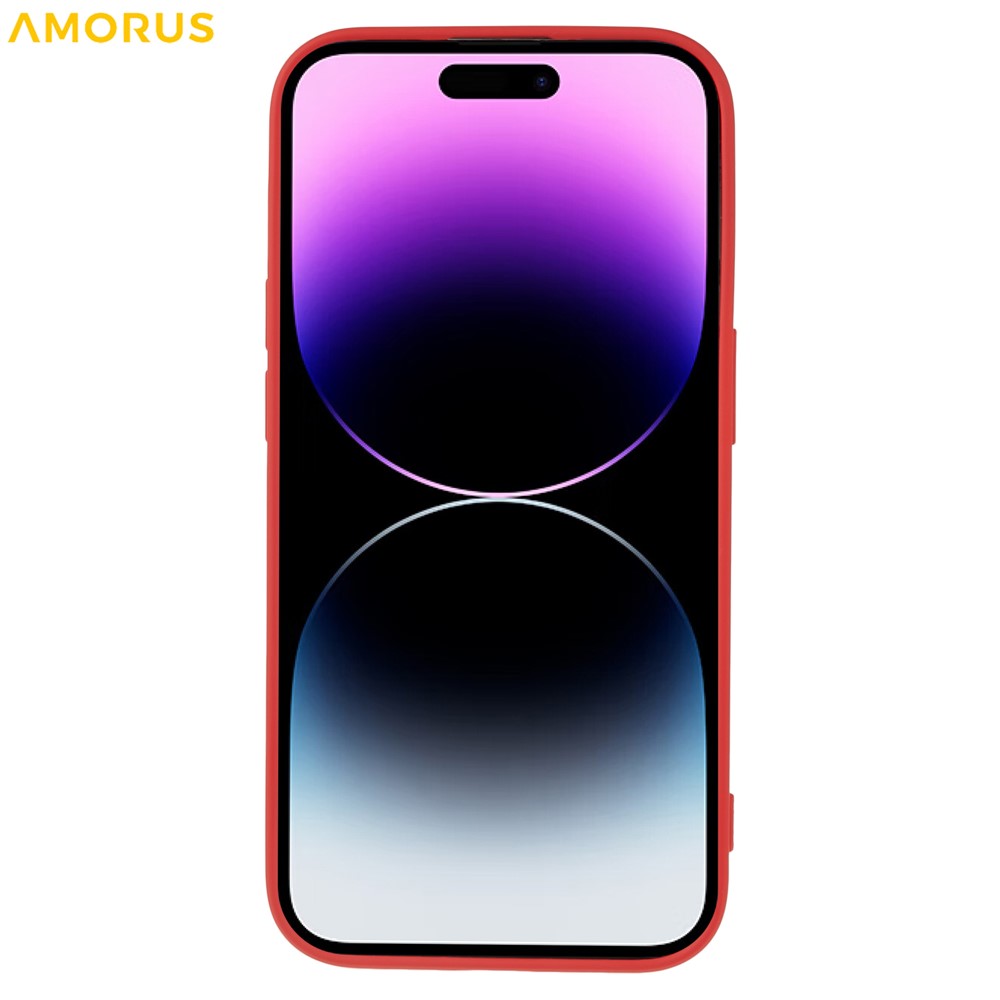 • AMORUS For iPhone 14 Pro Case Precise Cutouts TPU Fiber Lining Shockproof Phone Cover - Hawthorn Red