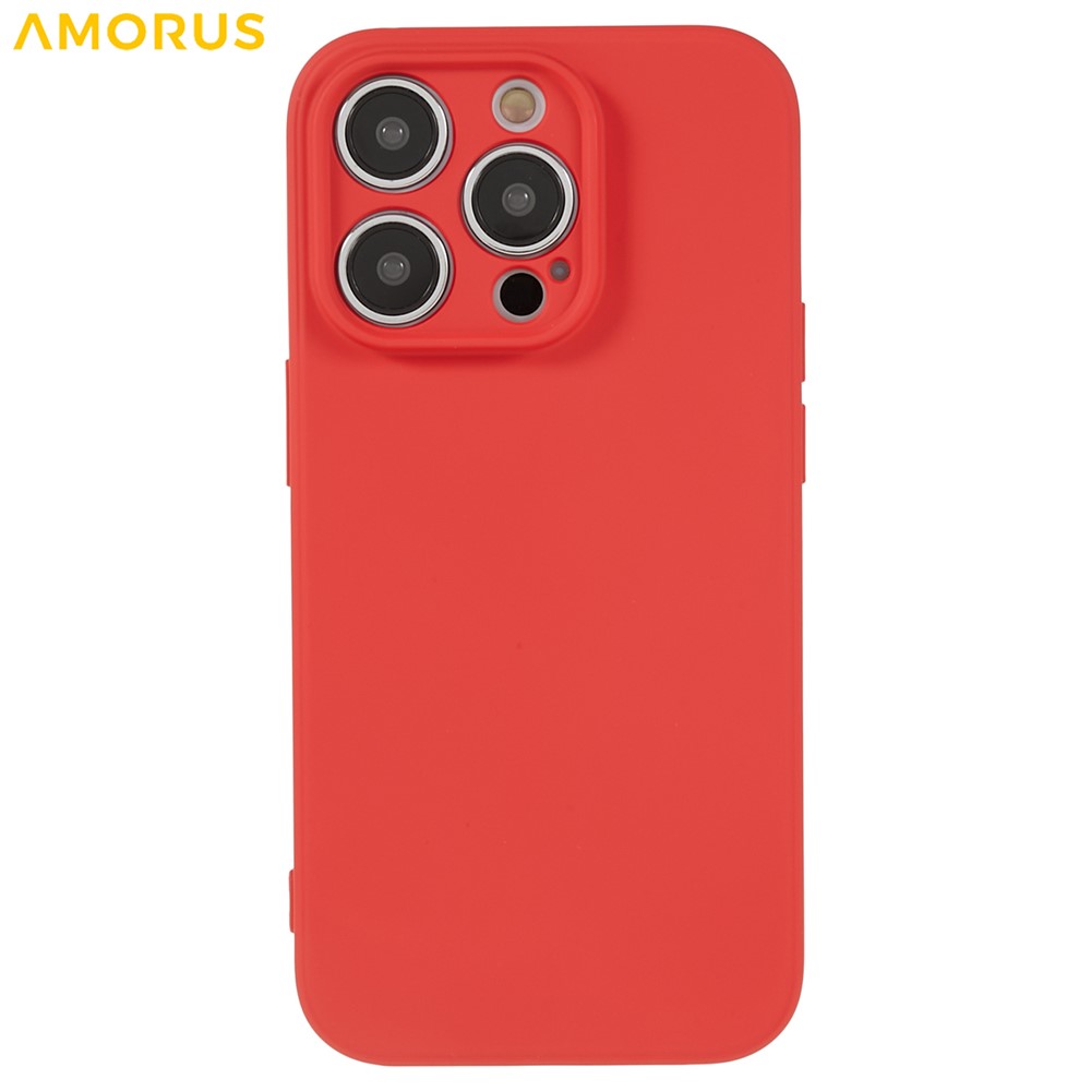 AMORUS For iPhone 15 Pro Case Precise Cutouts TPU Fiber Lining Shockproof Phone Cover - Red