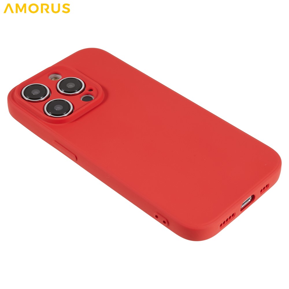 • AMORUS For iPhone 15 Pro Case Precise Cutouts TPU Fiber Lining Shockproof Phone Cover - Hawthorn Red