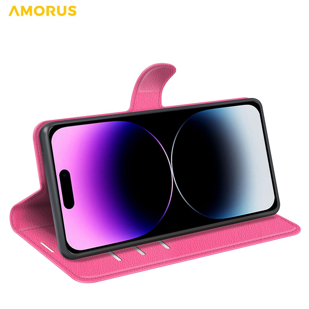AMORUS For iPhone 15 Pro Wallet Case Litchi Texture Shockproof Leather Flip Stand Phone Cover - Rose $16.41