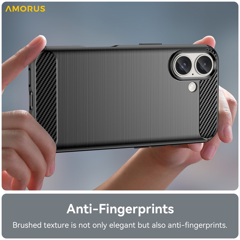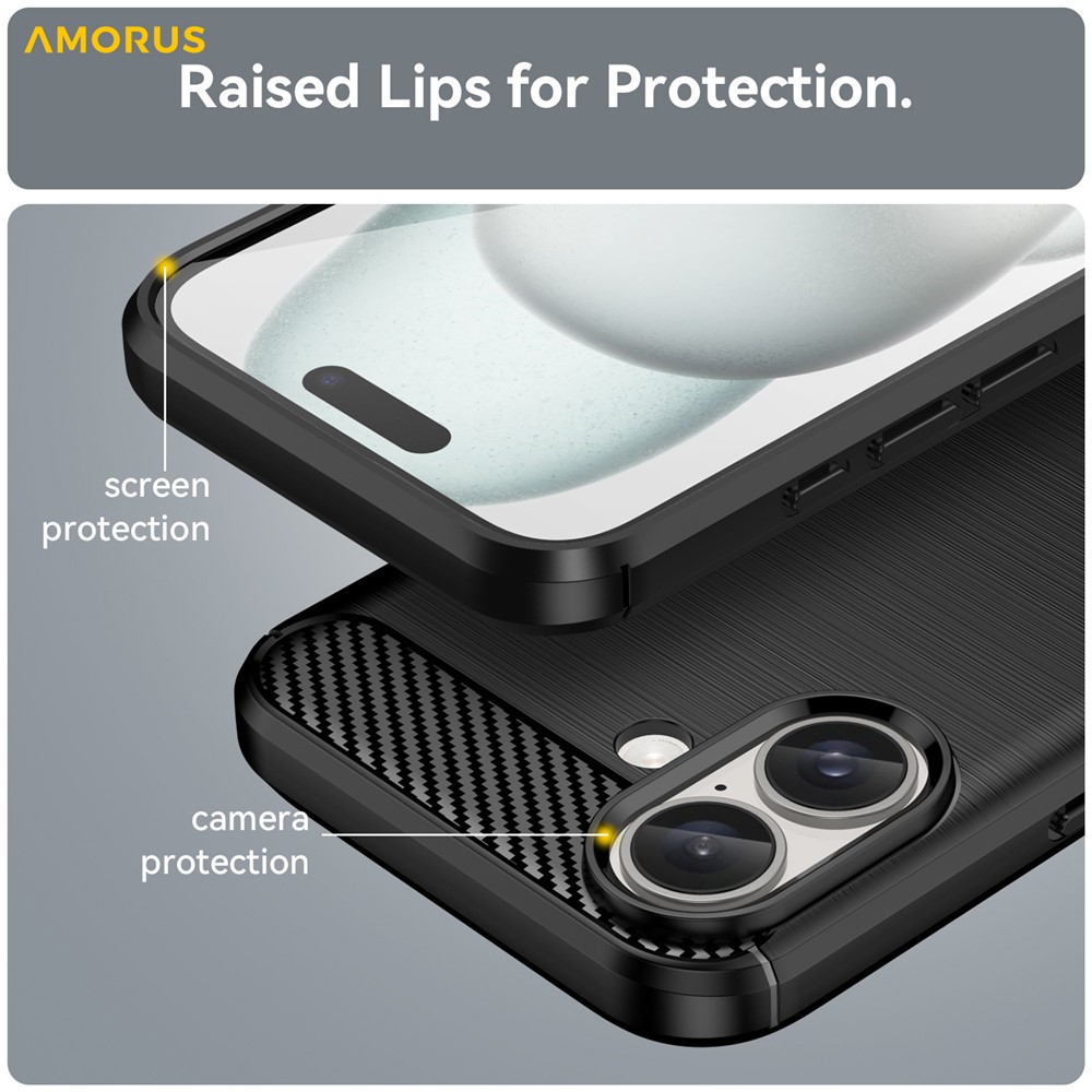AMORUS For iPhone 16 Plus Case Carbon Fiber Texture Brushed Protective Phone Cover – Black