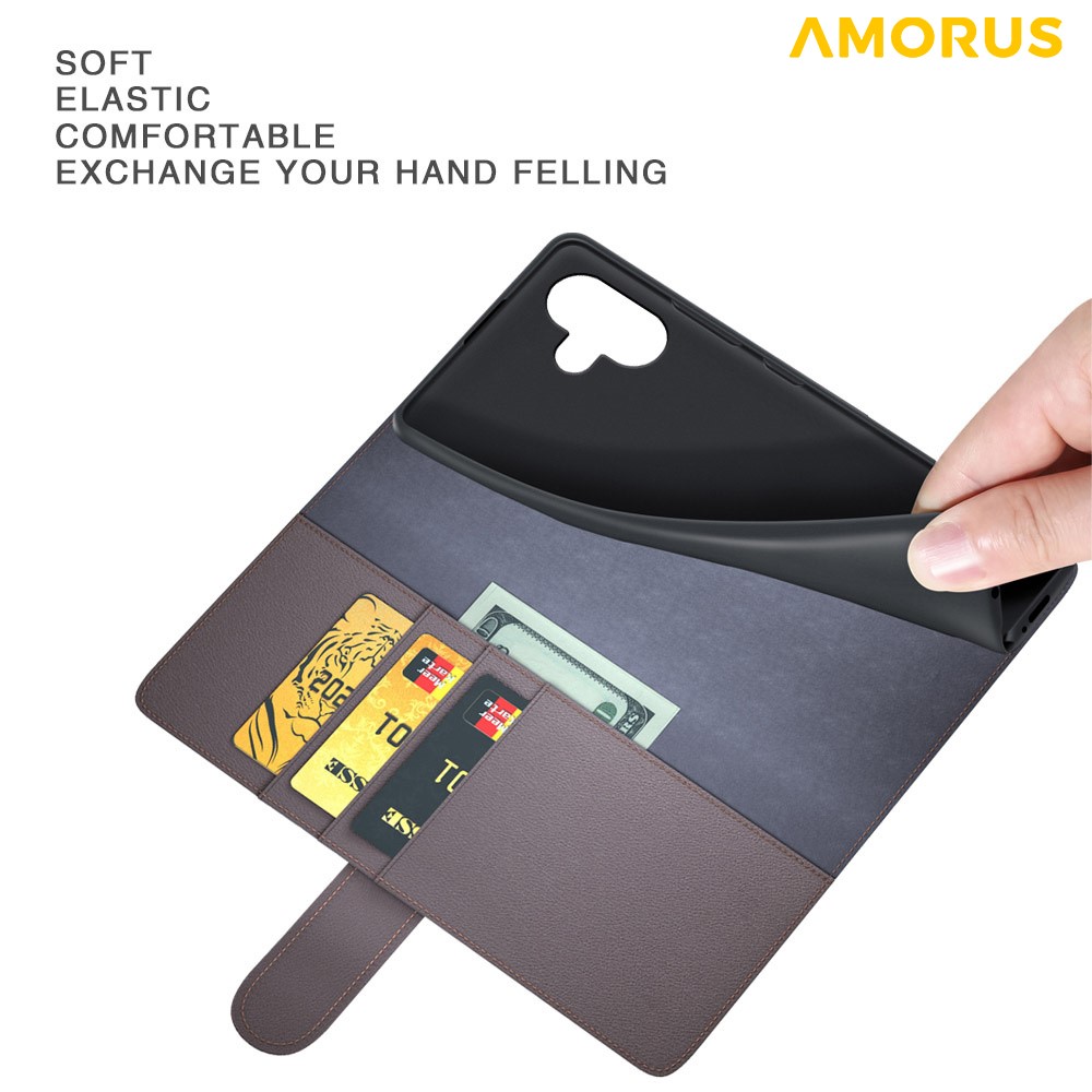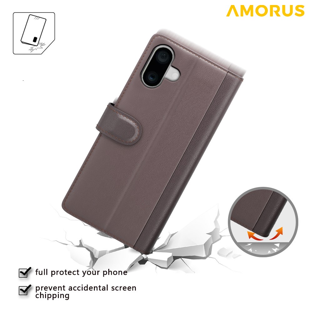 AMORUS For iPhone 16 Plus Stand Cases Calf Texture Genuine Split Leather Wallet Phone Cover - Brown $20.37