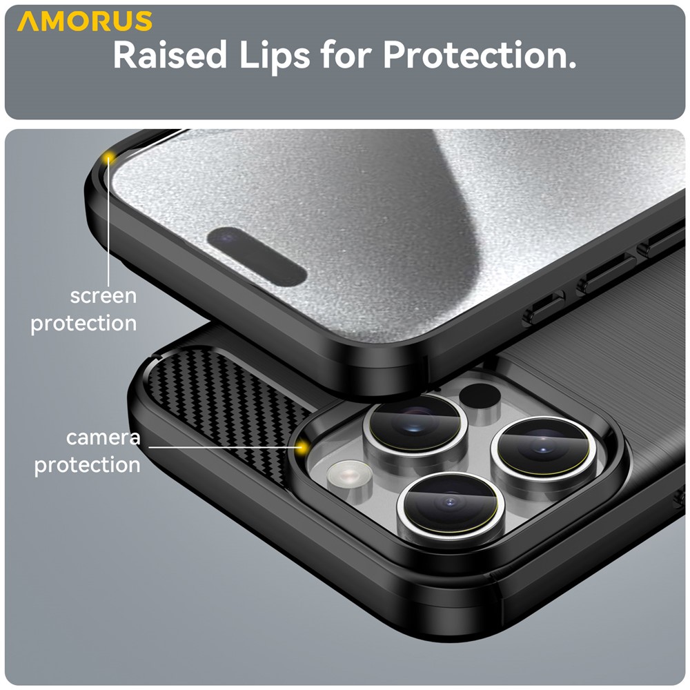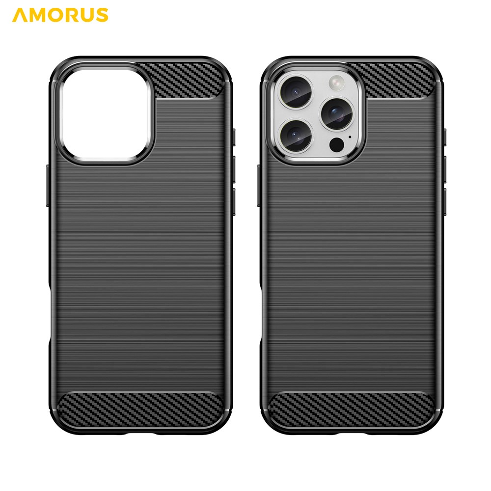 AMORUS For iPhone 16 Pro Max Case Carbon Fiber Texture Brushed Protective Phone Cover - Black