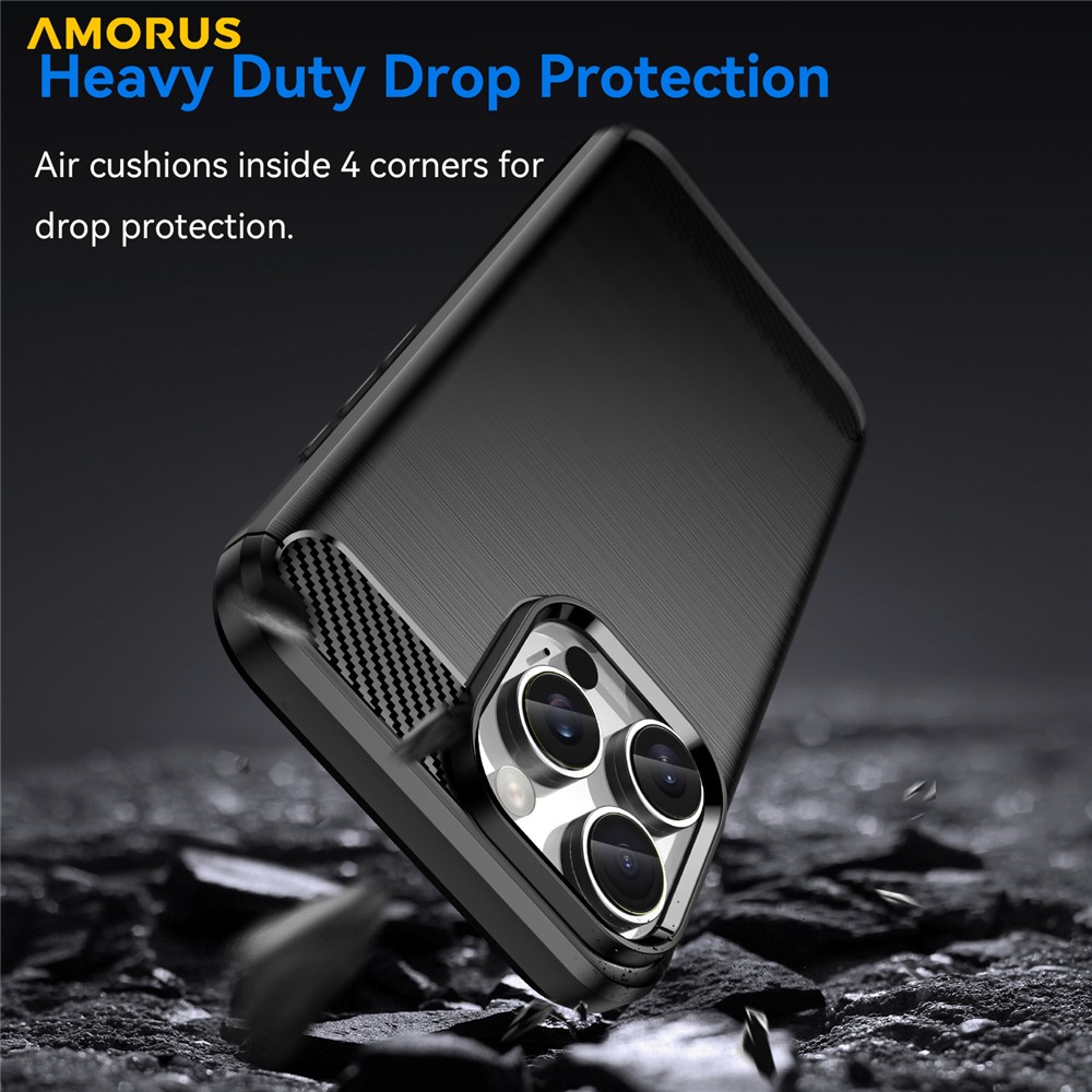 AMORUS For iPhone 16 Pro Max Case Carbon Fiber Texture Brushed Protective Phone Cover - Black $13.34