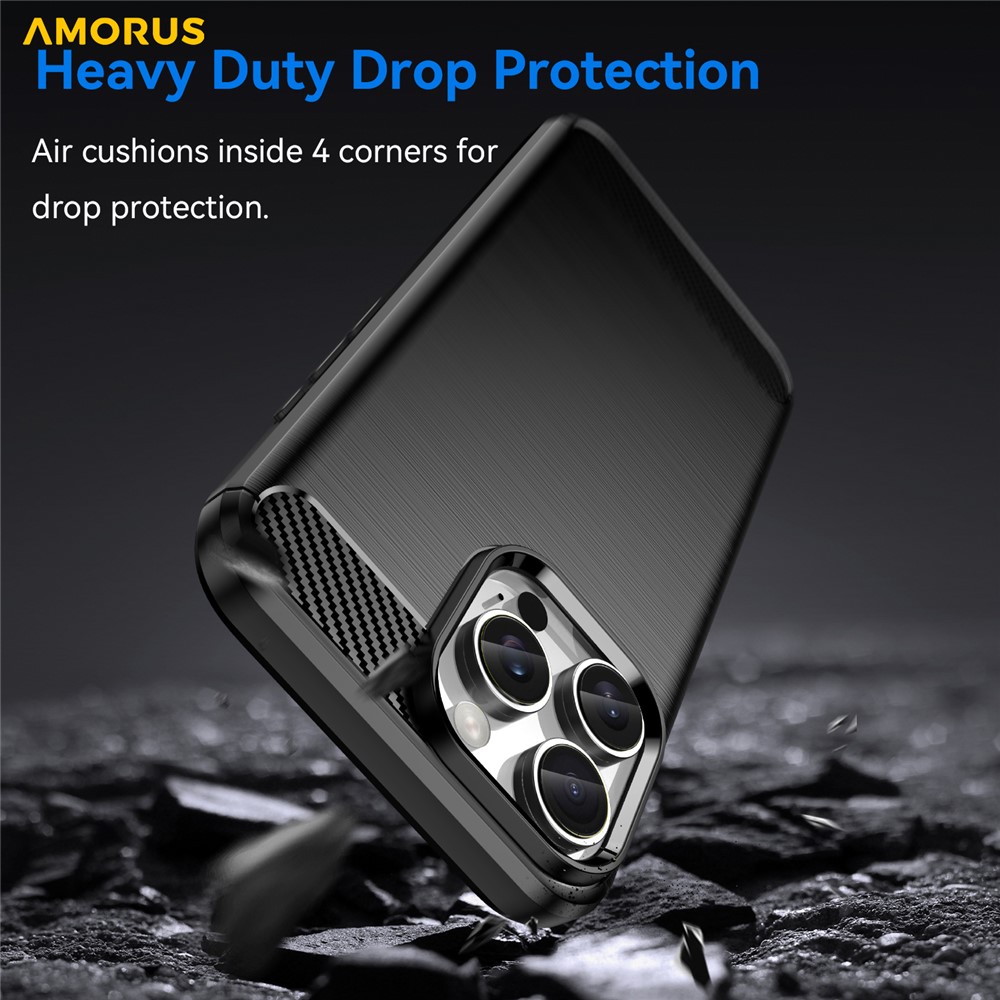 AMORUS For iPhone 16 Pro Max Case Carbon Fiber Texture Brushed Protective Phone Cover - Black $13.34