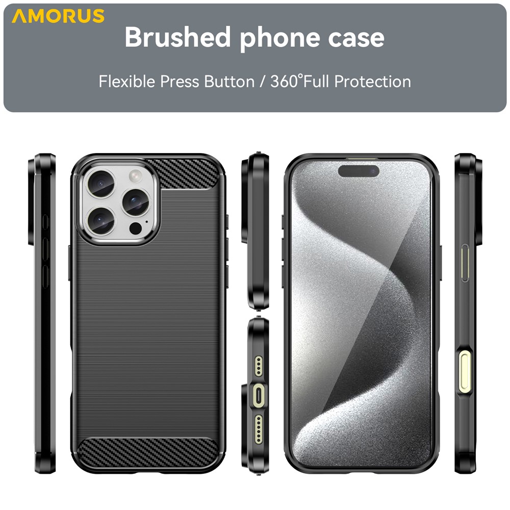 AMORUS For iPhone 16 Pro Max Case Carbon Fiber Texture Brushed Protective Phone Cover - Black
