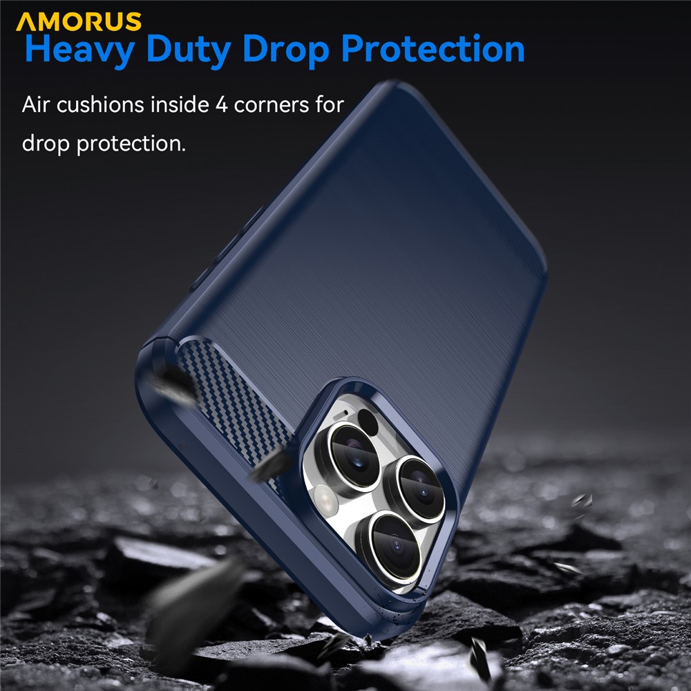 AMORUS For iPhone 16 Pro Max Case Carbon Fiber Texture Brushed Protective Phone Cover - Blue $13.34