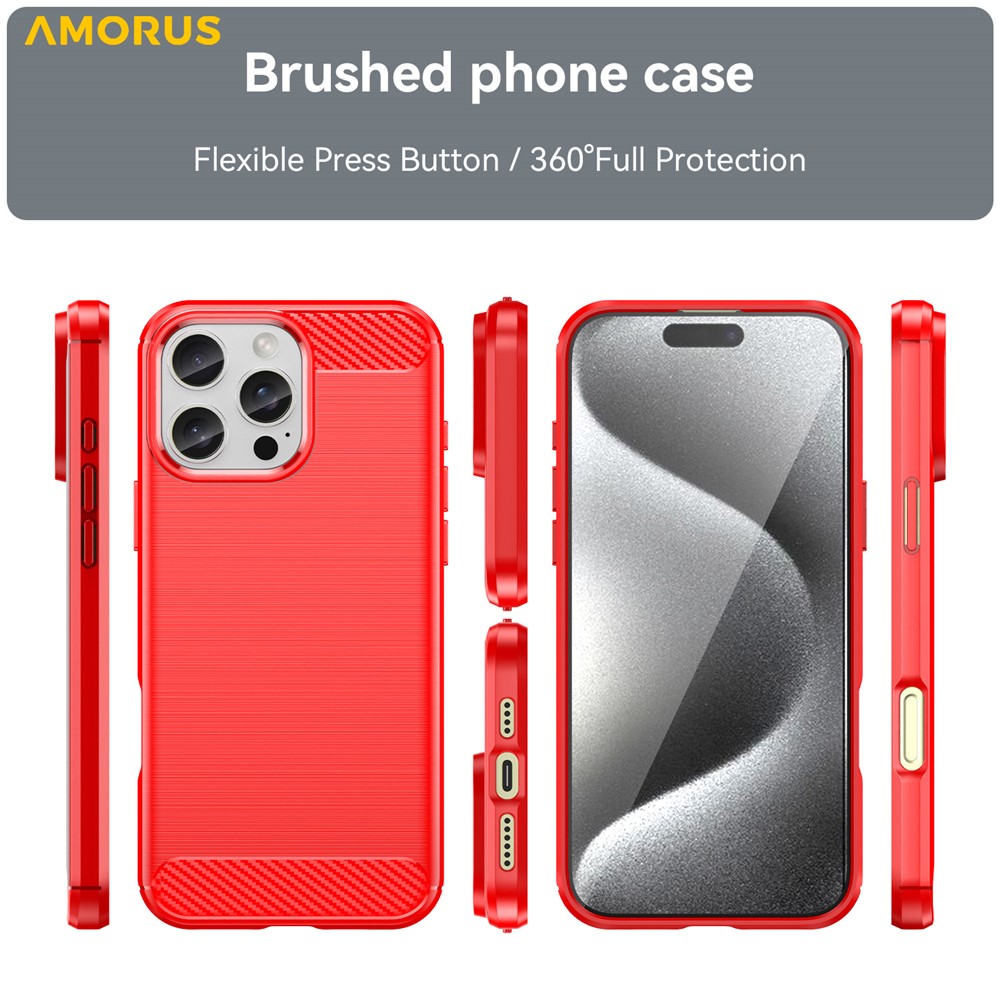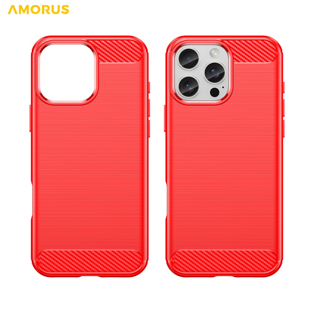 AMORUS For iPhone 16 Pro Max Case Carbon Fiber Texture Brushed Protective Phone Cover - Red