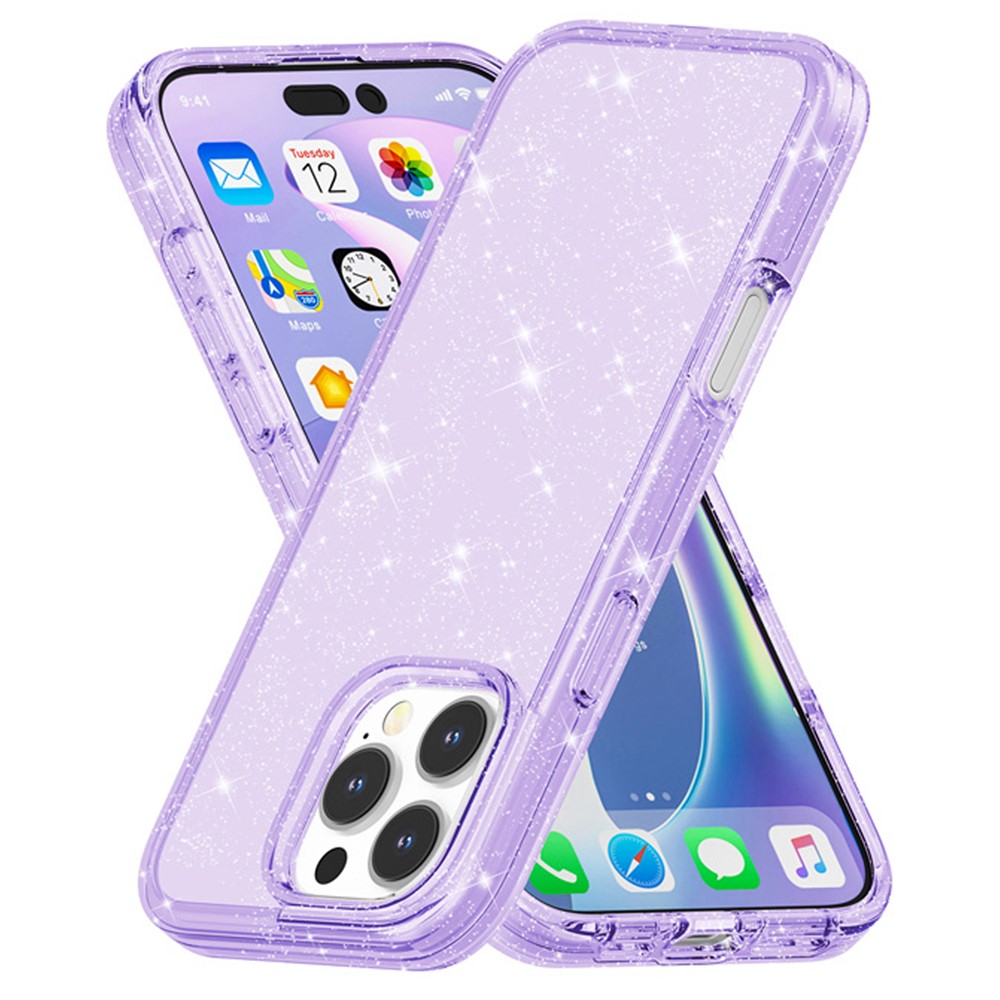 AMORUS For iPhone 16 Pro Max Case Soft TPU Hard PC Back Shockproof Phone Cover - Glitter Purple