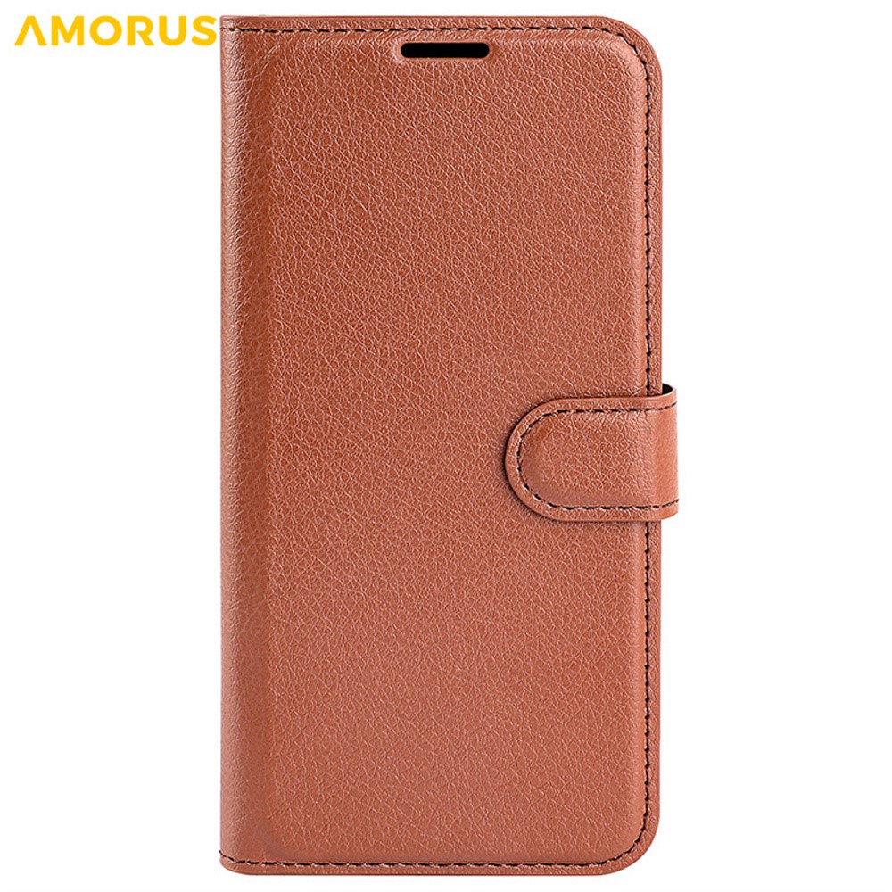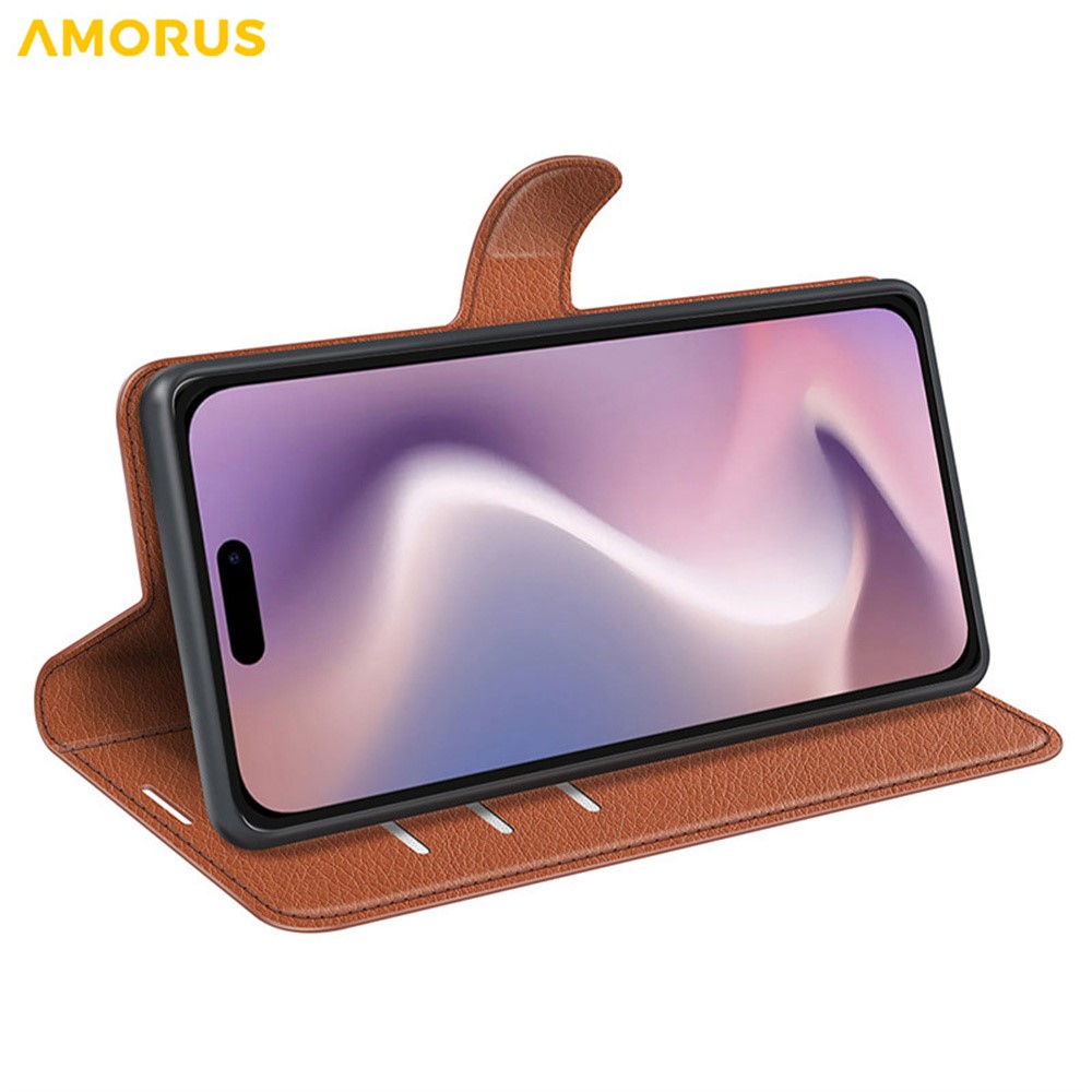 AMORUS For iPhone 16 Wallet Case Litchi Texture Shockproof Leather Flip Stand Phone Cover - Brown $16.41