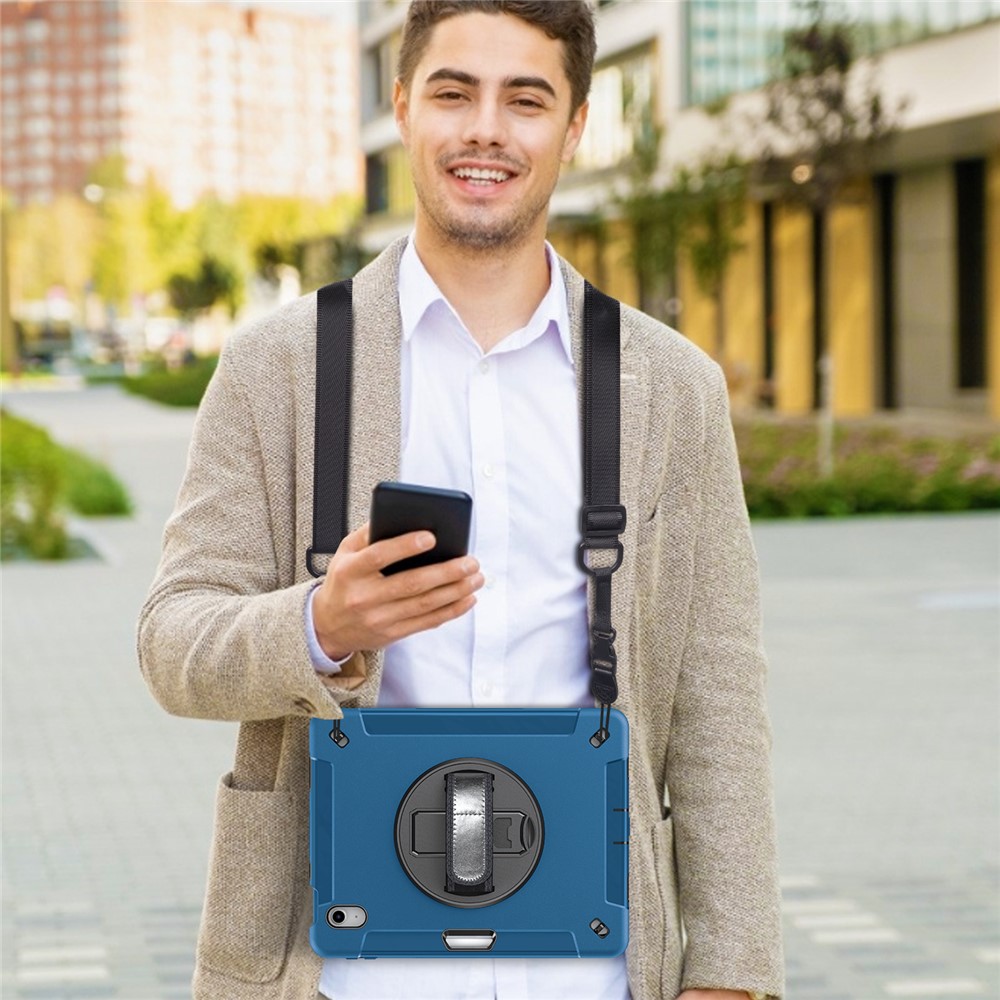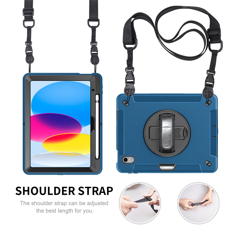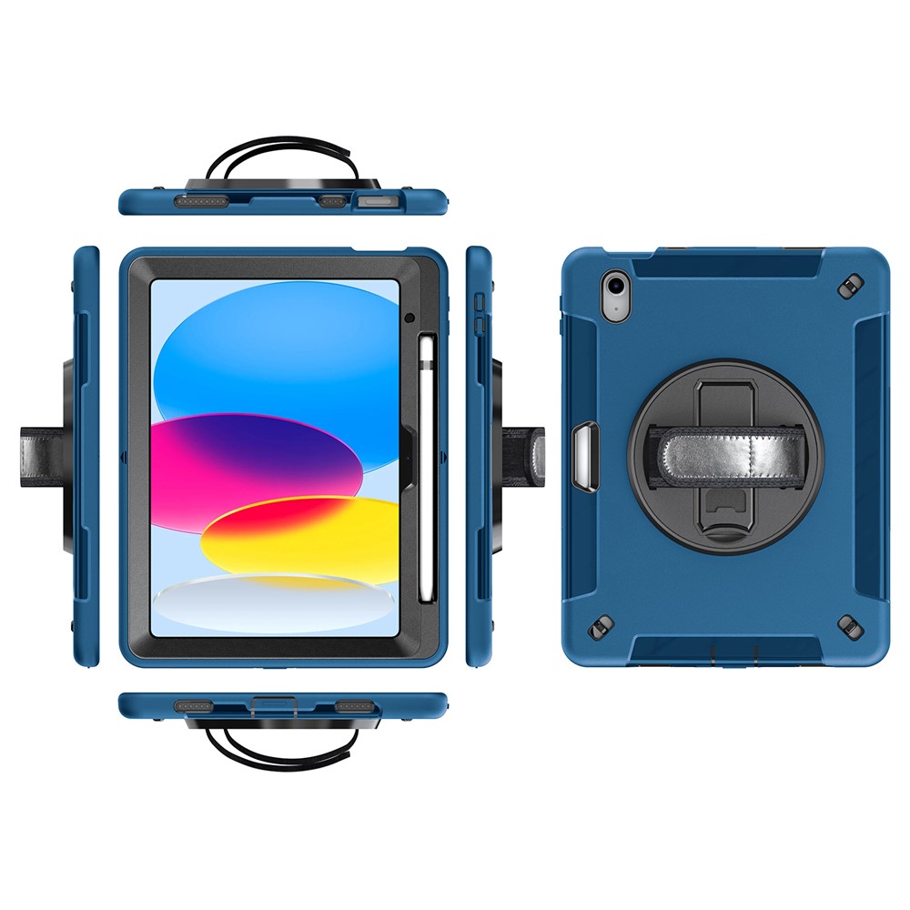 • Anti-Drop Kickstand Case for iPad (2025) / 10.9 (2022) Pencil Slot TPU+PC Tablet Cover with Shoulder Strap - Dark Blue PC