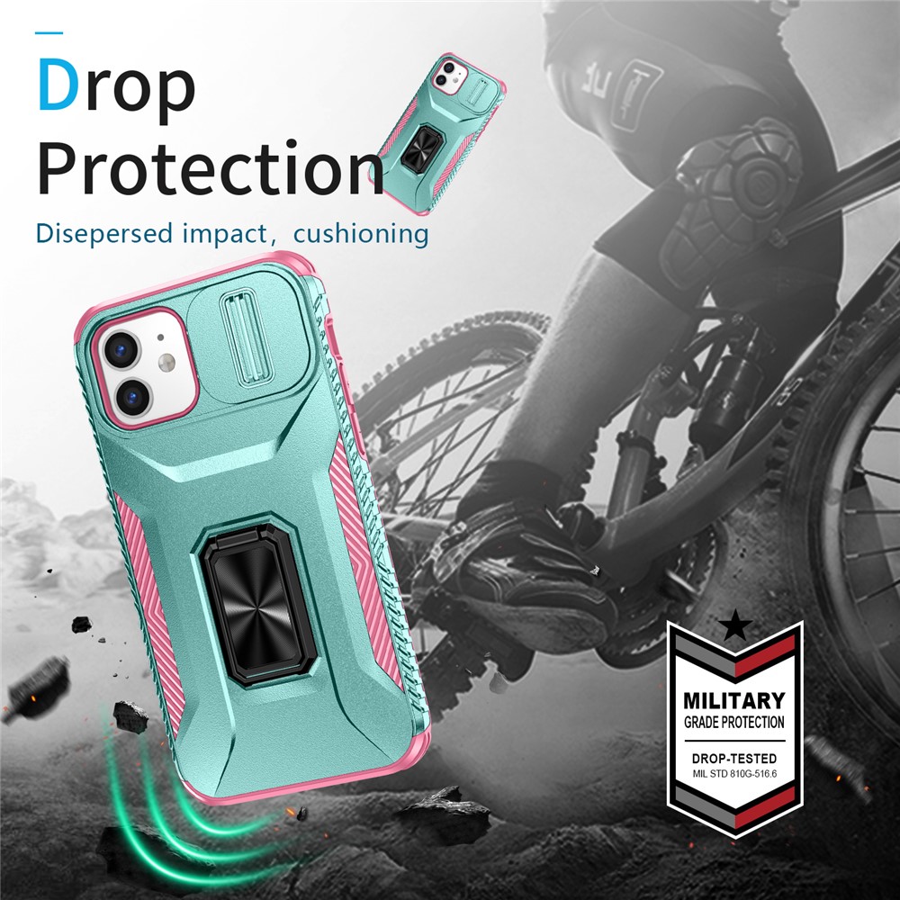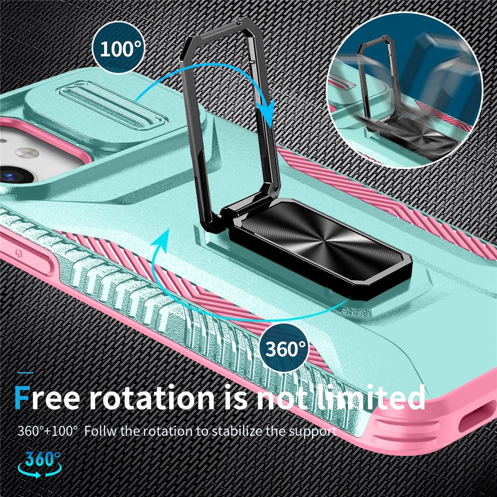 - Designed with a metal ring kickstand for horizontal and vertical screen supports
