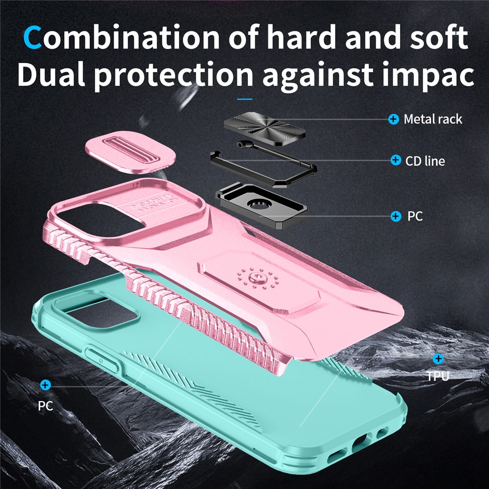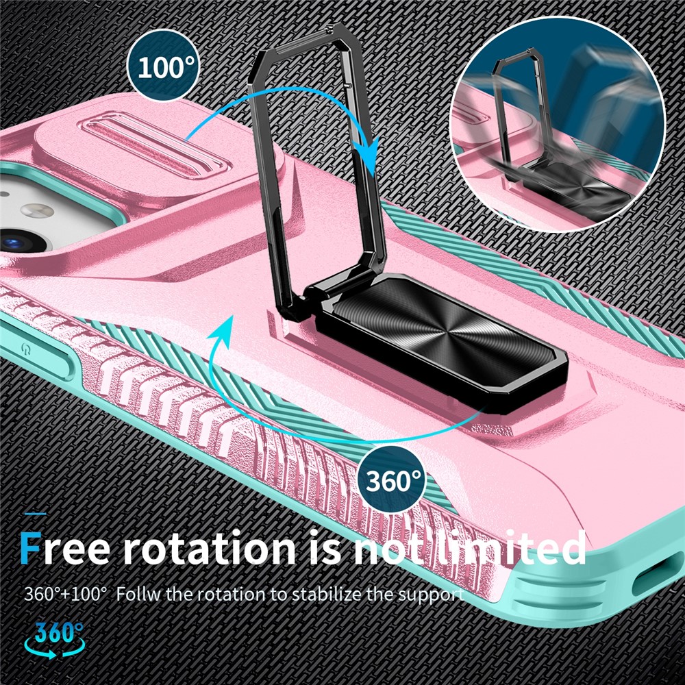 - Designed with a metal ring kickstand for horizontal and vertical screen supports