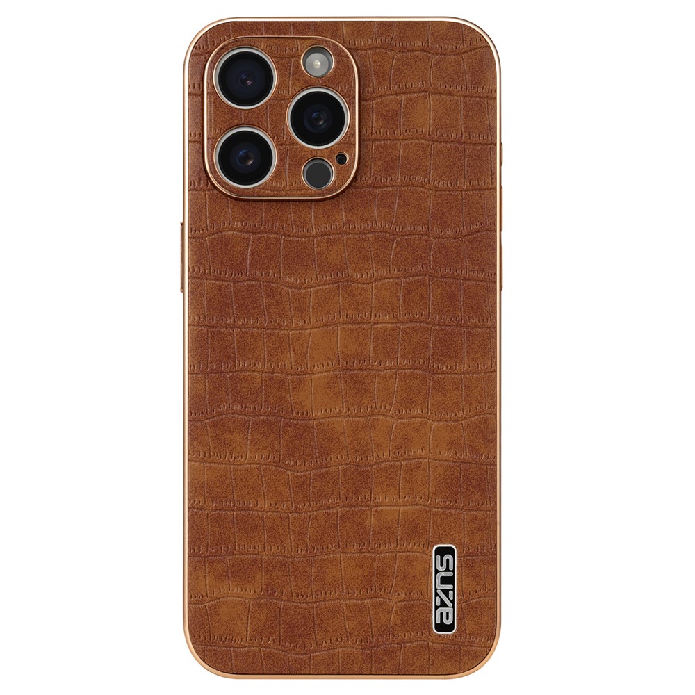 AZNS For iPhone 13 Pro Max Case Crocodile Texture Electroplating PU+TPU Phone Cover – Brown