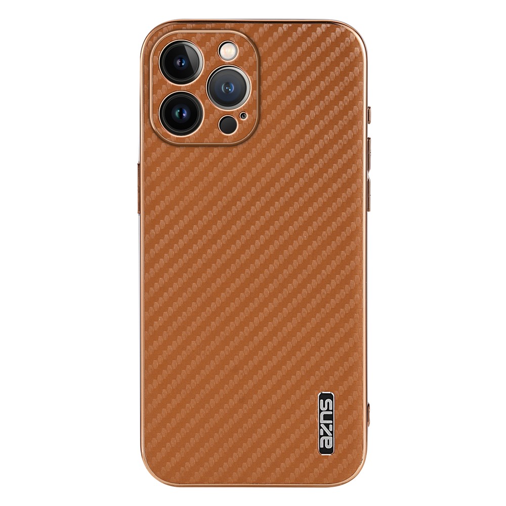 AZNS For iPhone 13 Pro Max Case Electroplating Carbon Fiber Texture PU+TPU Phone Cover – Brown