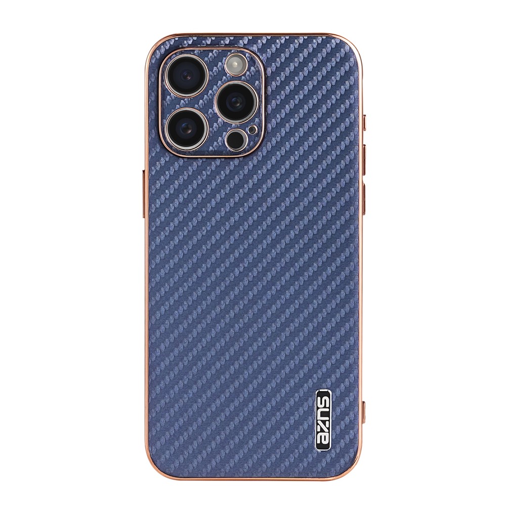 AZNS For iPhone 14 Pro Case Electroplating Carbon Fiber Texture PU+TPU Phone Cover – Blue