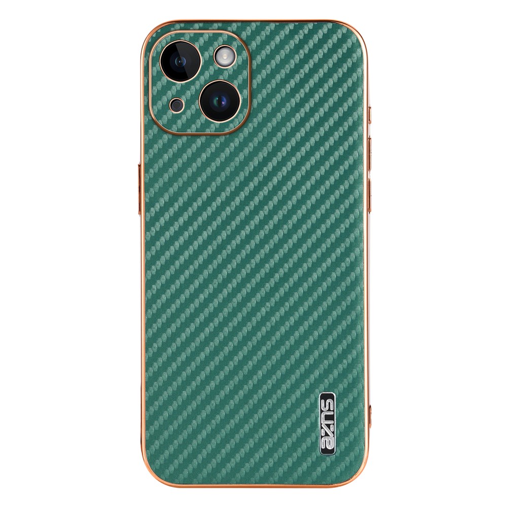 AZNS For iPhone 15 Case Electroplating Carbon Fiber Texture PU+TPU Phone Cover – Green