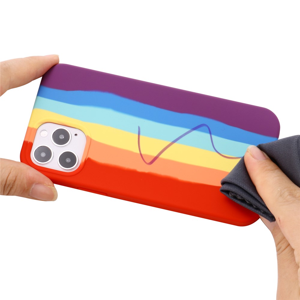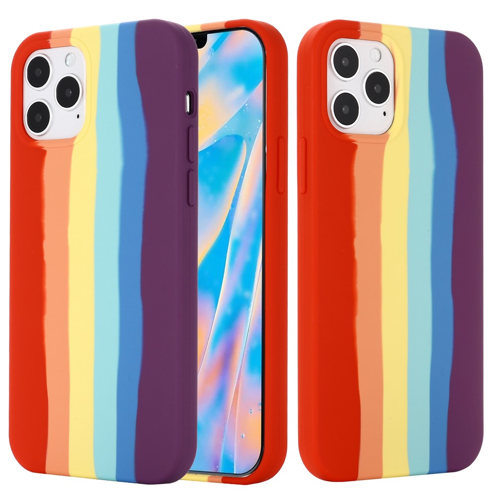 Back Cover for iPhone 11 Pro Max , Rainbow Design Anti-scratch Liquid Silicone Phone Case – Red