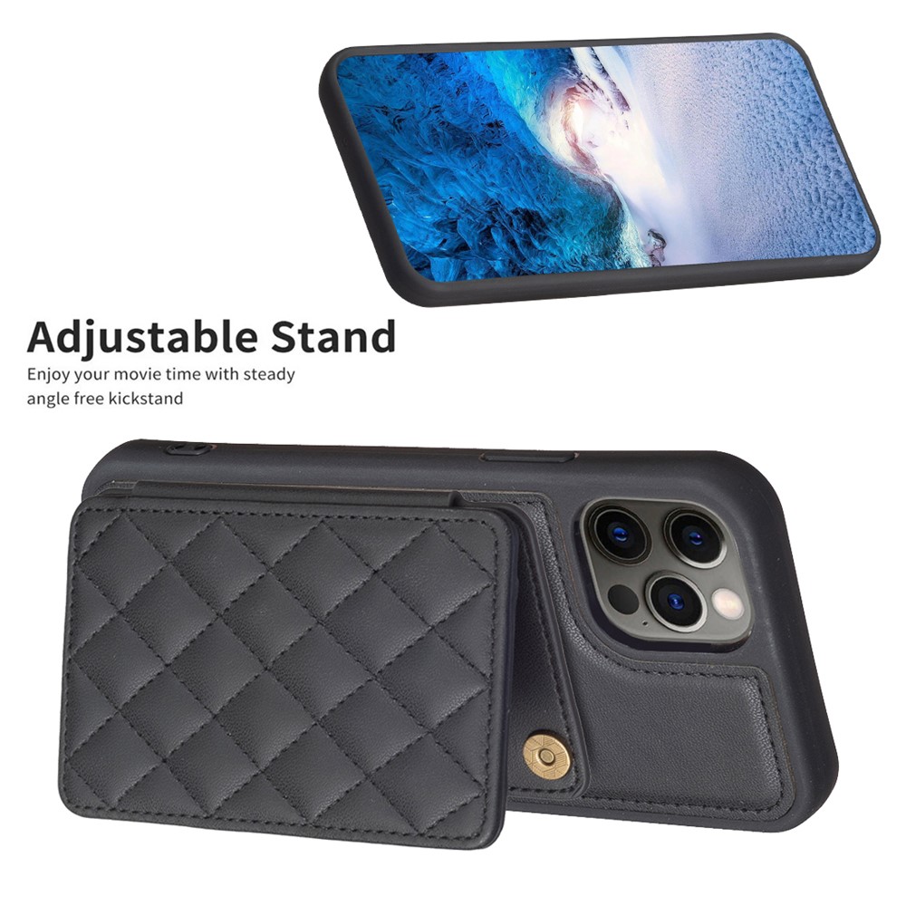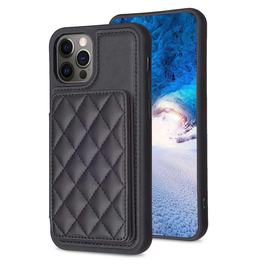 BF25 For iPhone 12 / 12 Pro Kickstand Phone Case Leather Coated TPU Cover with Card Slots Design – Black
