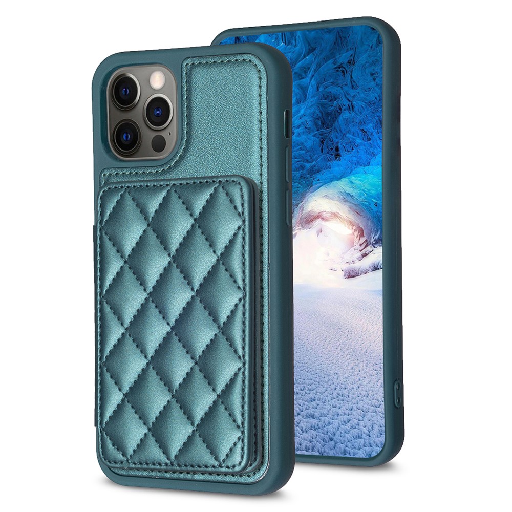 BF25 For iPhone 12 / 12 Pro Kickstand Phone Case Leather Coated TPU Cover with Card Slots Design – Green