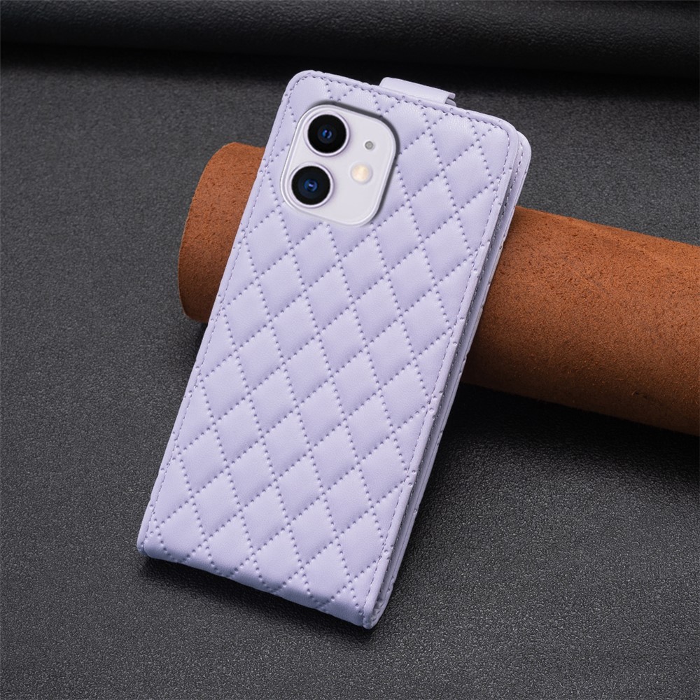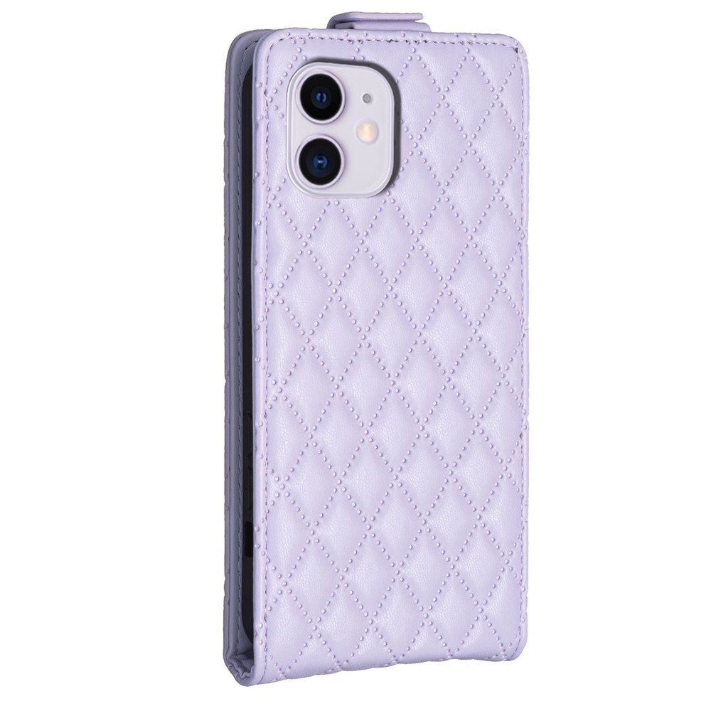 BF30 Phone Case for iPhone 11 Imprinted Leather Vertical Flip Card Holder Foldable Stand Cover – Purple