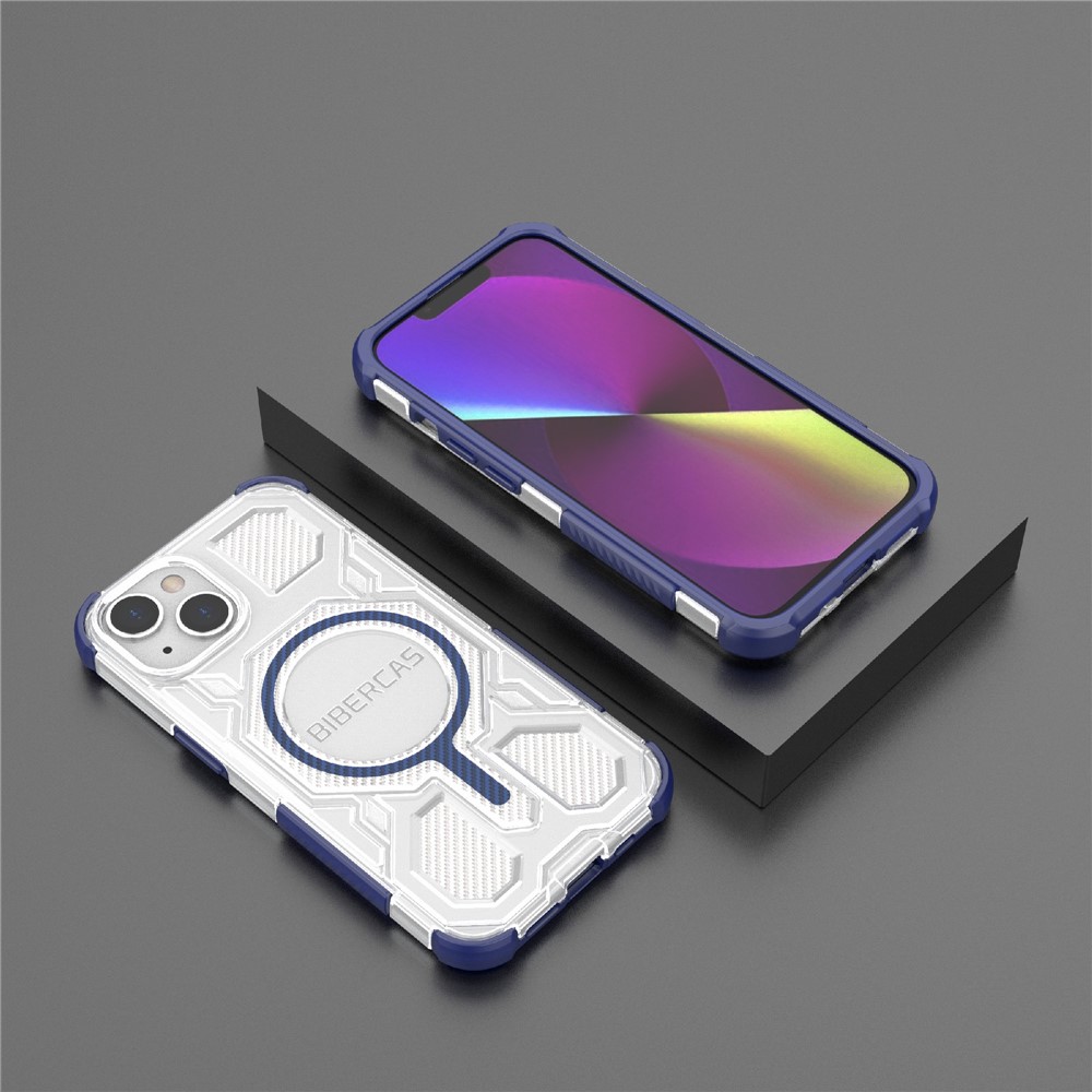 BIBERCAS J-16 Transparent Series For iPhone 14 / 13 Case Compatible with MagSafe TPU + PC Phone Cover – Blue