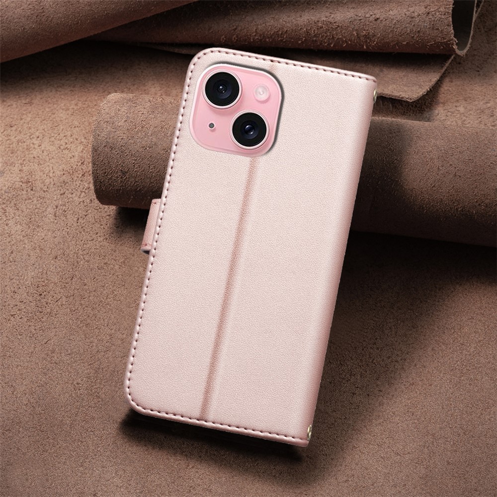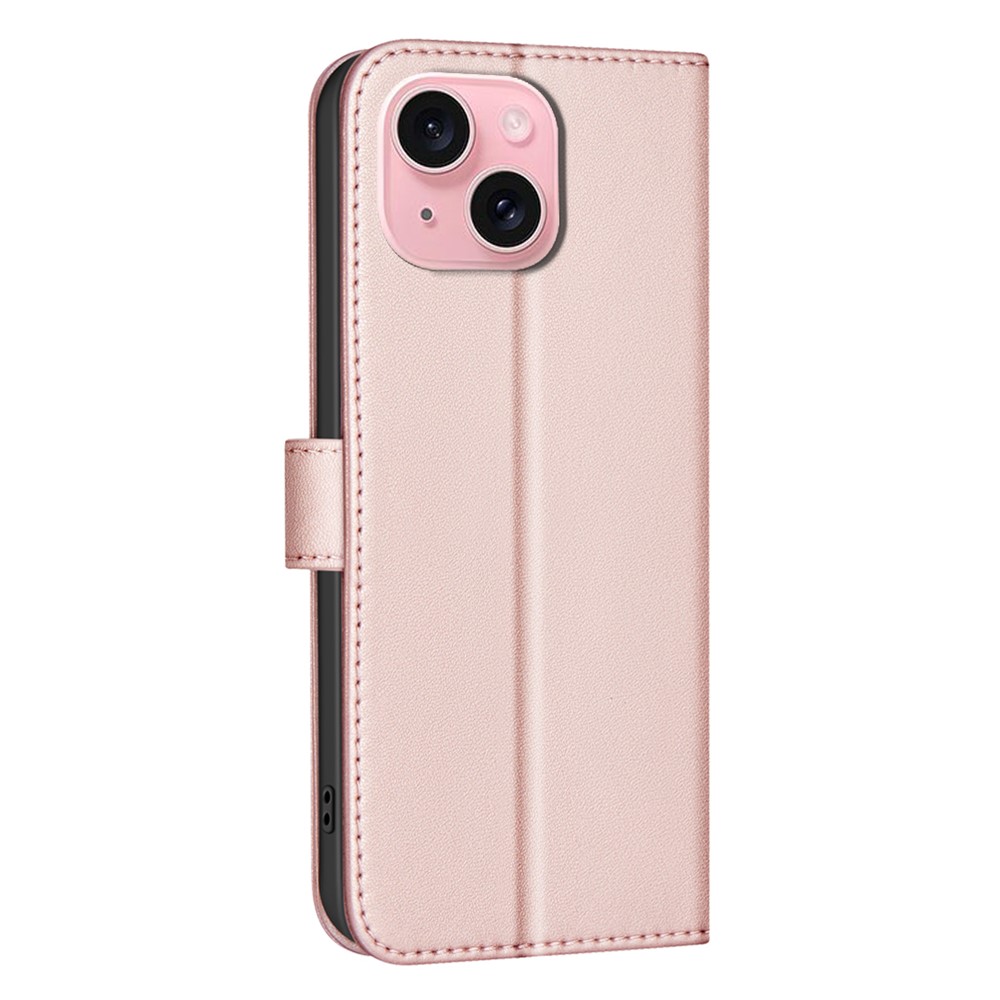BINFEN COLOR BF34 for iPhone 15 Case PU Leather Square Grid Pattern Phone Cover - Rose Gold