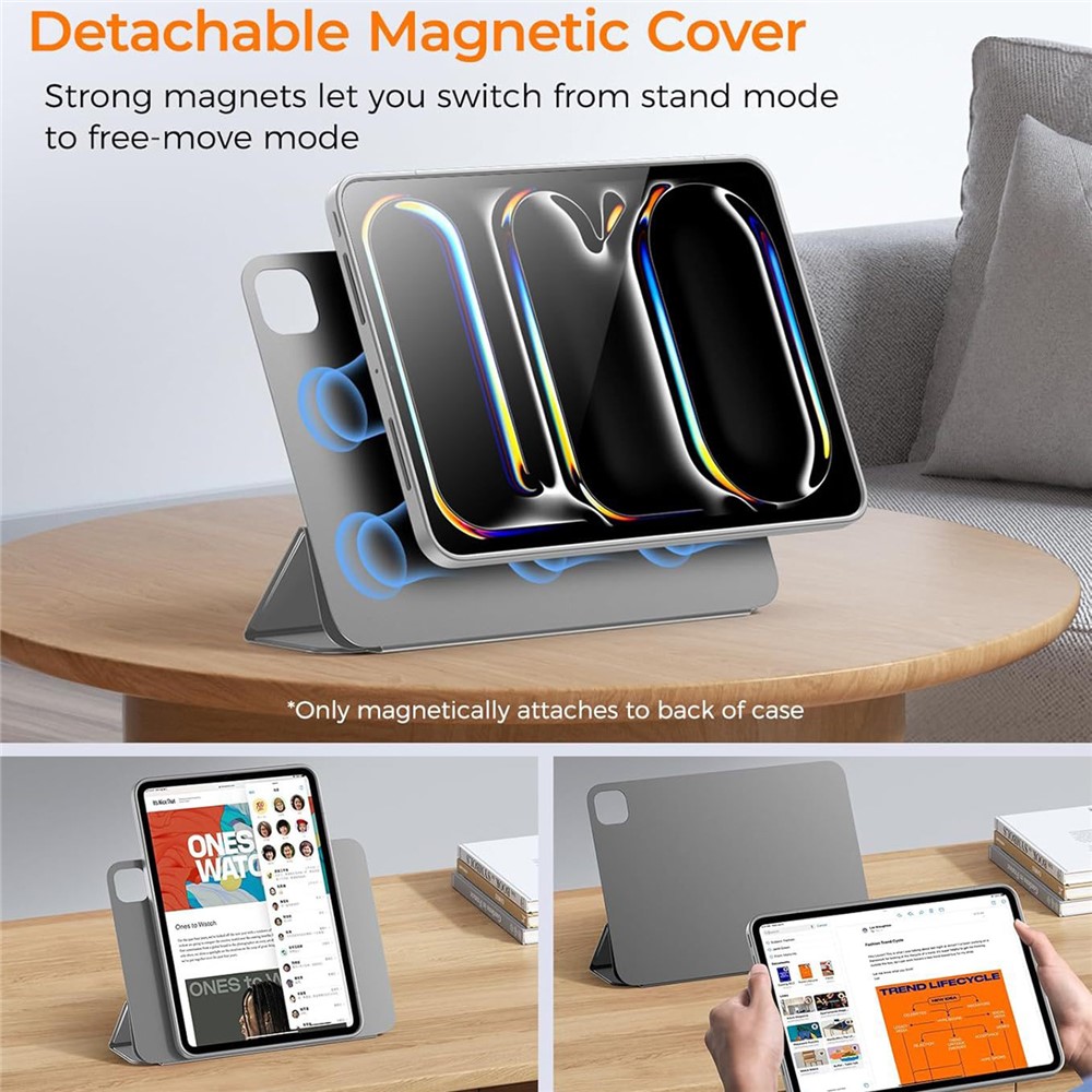 - Detachable Magnetic Cover Features a magnetic separating flat shell for easy attachment and detachment, strong magnets let you switch from stand mode to free-move mode