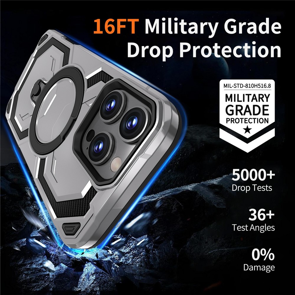 - Military-Grade Drop Protection Tested over 5000 times at 36+ angles, withstanding drops from up to 16 ft (MIL-STD-810H standard) without damage.