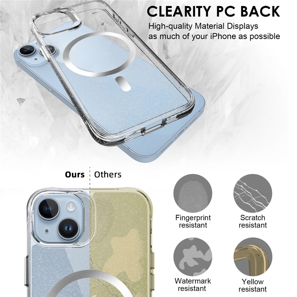 - Stylish Glitter Finish Crystal-clear case infused with glitter powder, adding a sparkling starry look while maintaining full transparency.