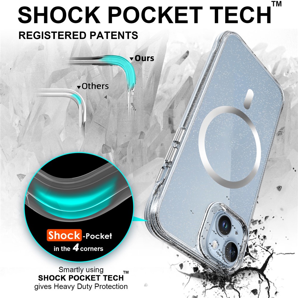 - Stylish Glitter Finish Crystal-clear case infused with glitter powder, adding a sparkling starry look while maintaining full transparency.