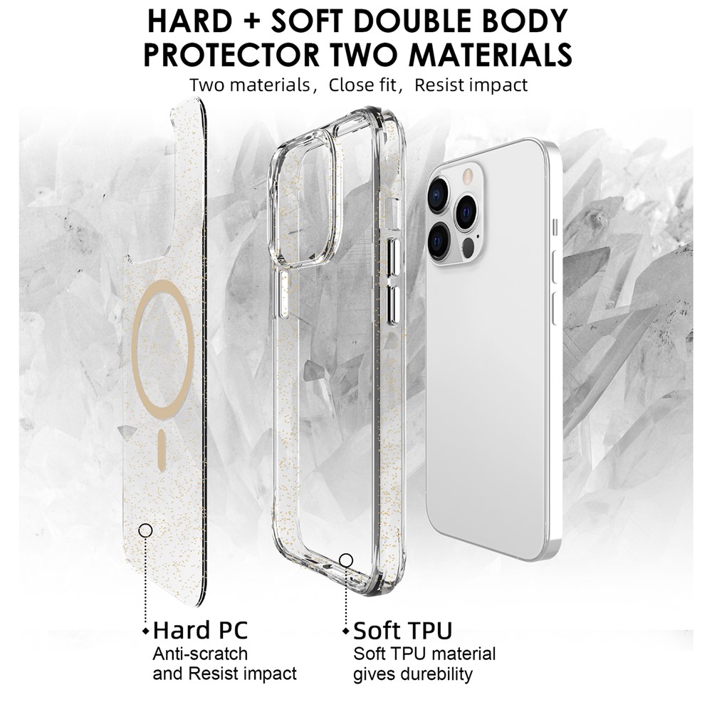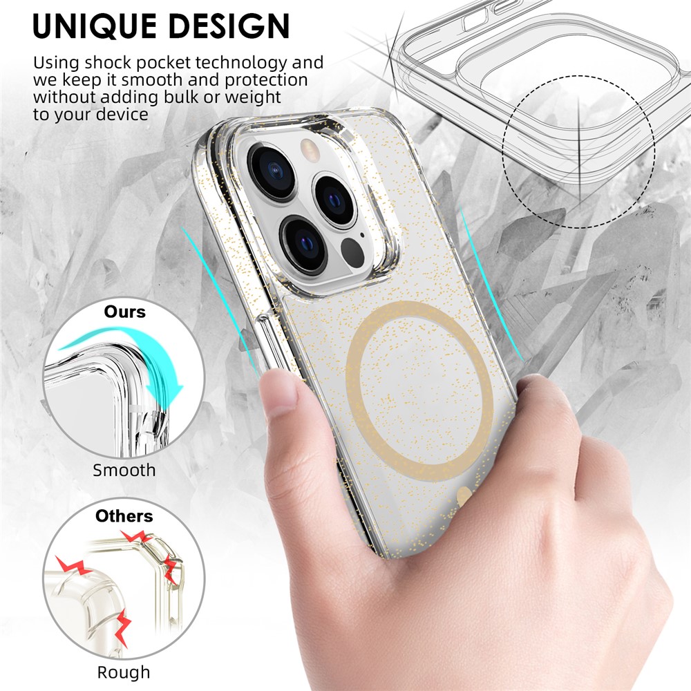 - Stylish Glitter Finish Crystal-clear case infused with glitter powder, adding a sparkling starry look while maintaining full transparency.