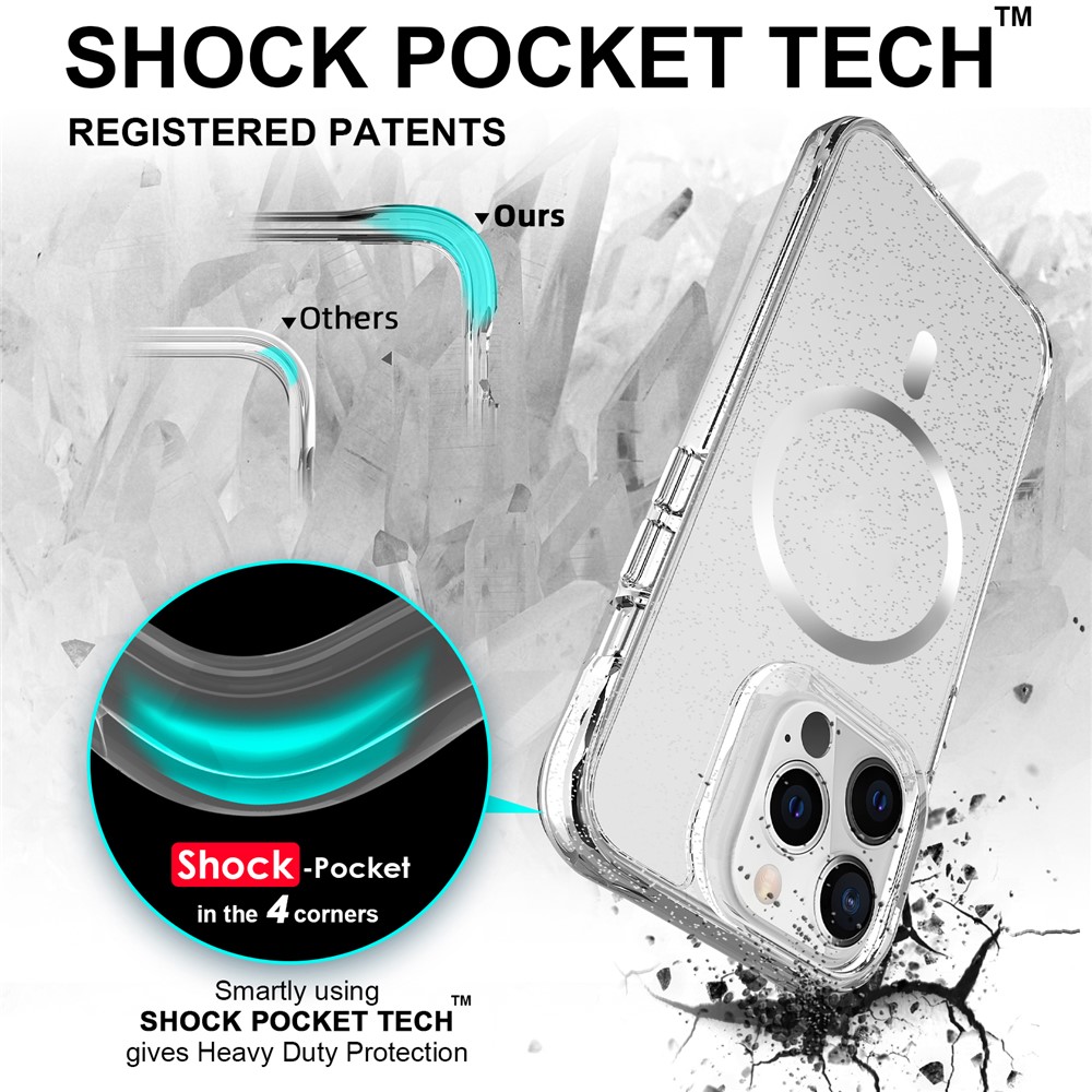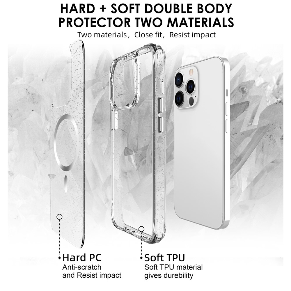 - Stylish Glitter Finish Crystal-clear case infused with glitter powder, adding a sparkling starry look while maintaining full transparency.