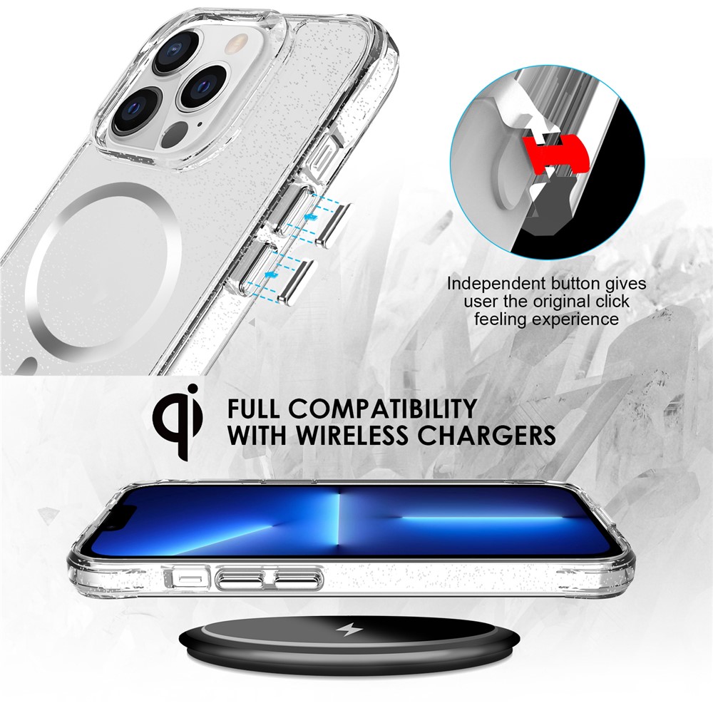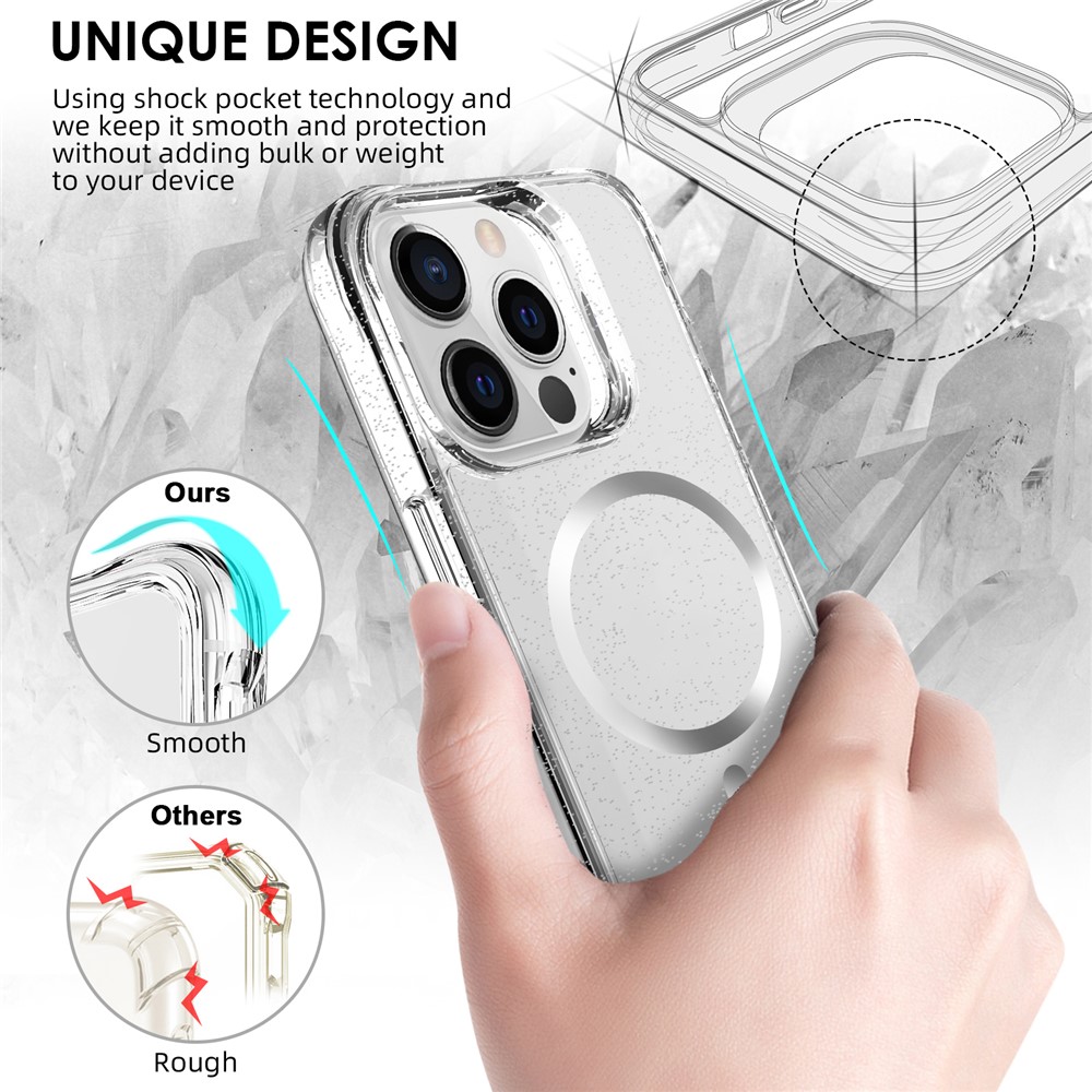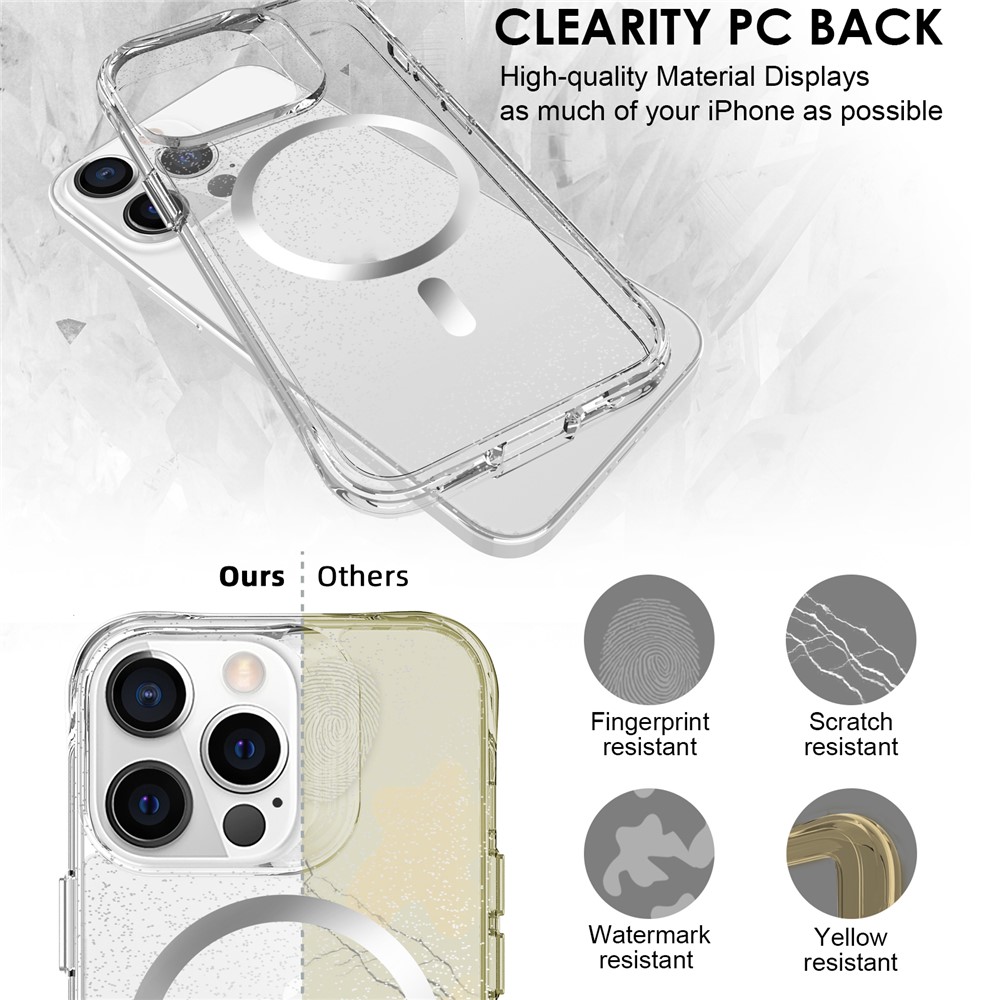 - Stylish Glitter Finish Crystal-clear case infused with glitter powder, adding a sparkling starry look while maintaining full transparency.