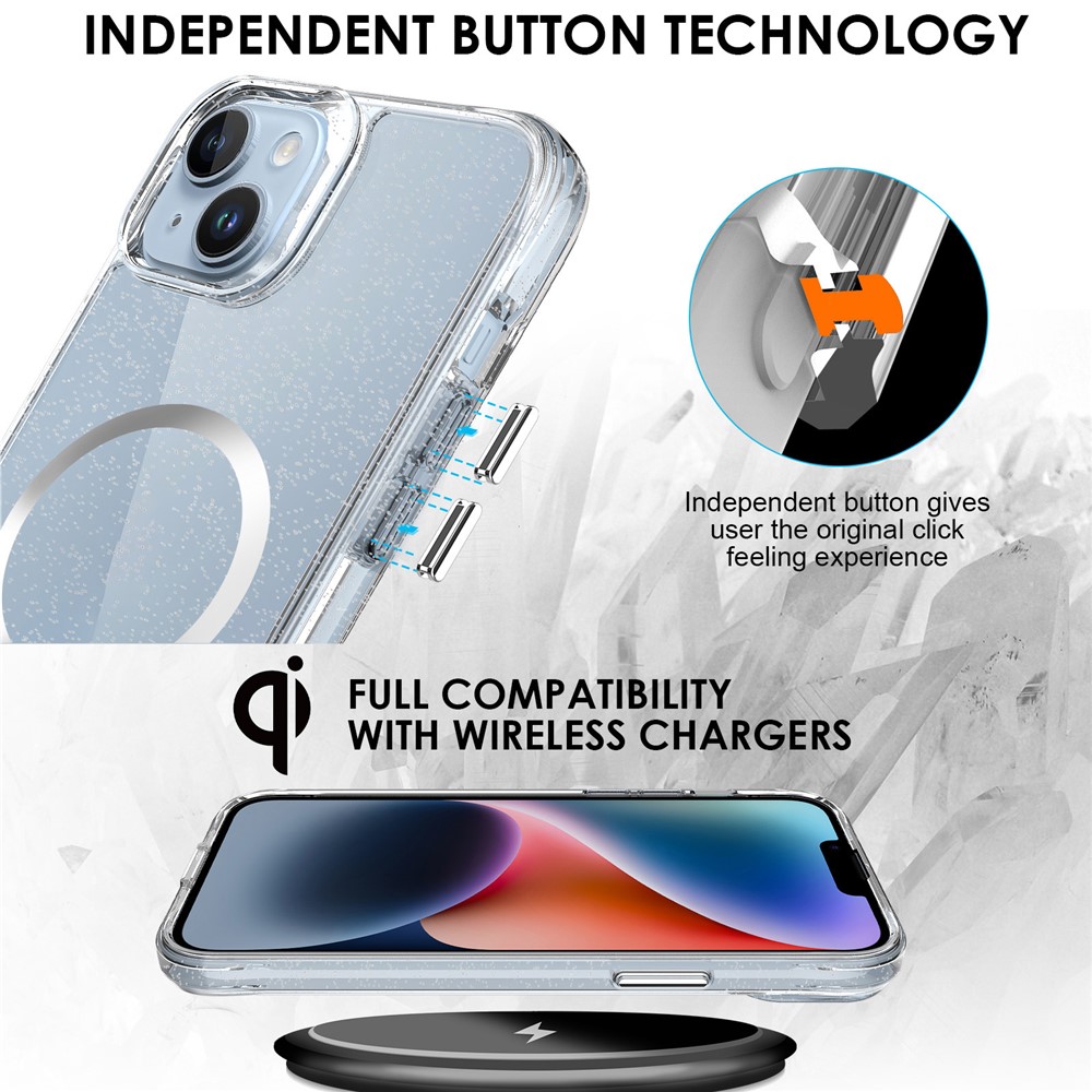 - Stylish Glitter Finish Crystal-clear case infused with glitter powder, adding a sparkling starry look while maintaining full transparency.