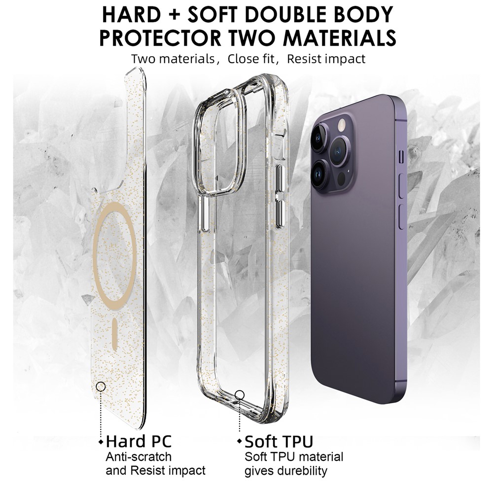 Bulk Purchasing For iPhone 14 Pro Max Case Compatible with MagSafe Starry Glitter PC + TPU Phone Cover - Gold $17.23