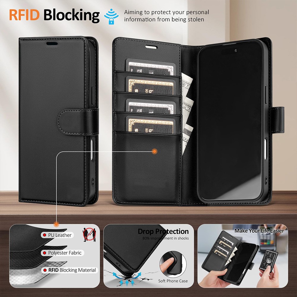 - 2-in-1 Detachable Design Features a premium PU leather flip cover paired with a removable soft TPU inner shell, allowing flexible use as a wallet or standalone case