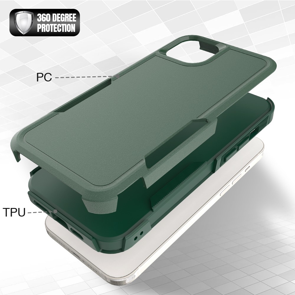 Bulk Purchasing For iPhone 15 Case 2 in 1 PC + TPU Shockproof Phone Cover – Dark Green