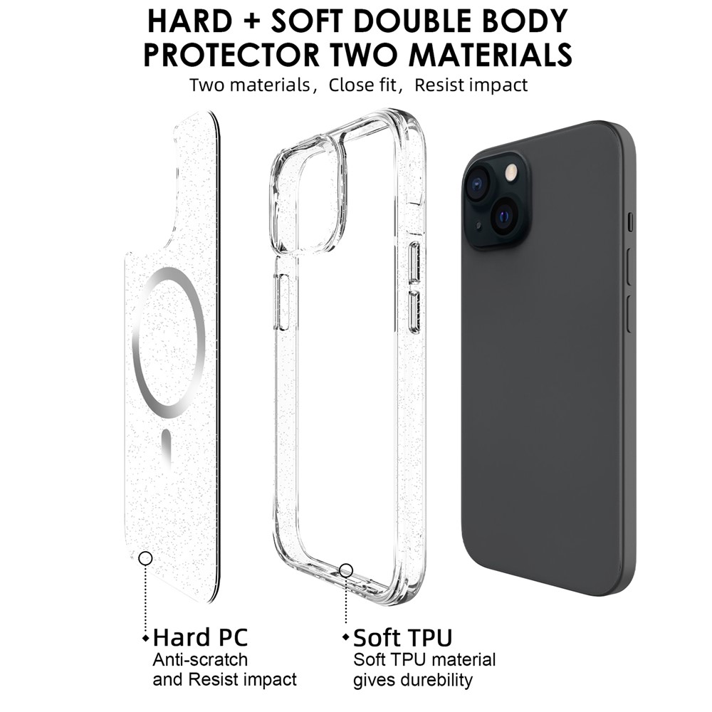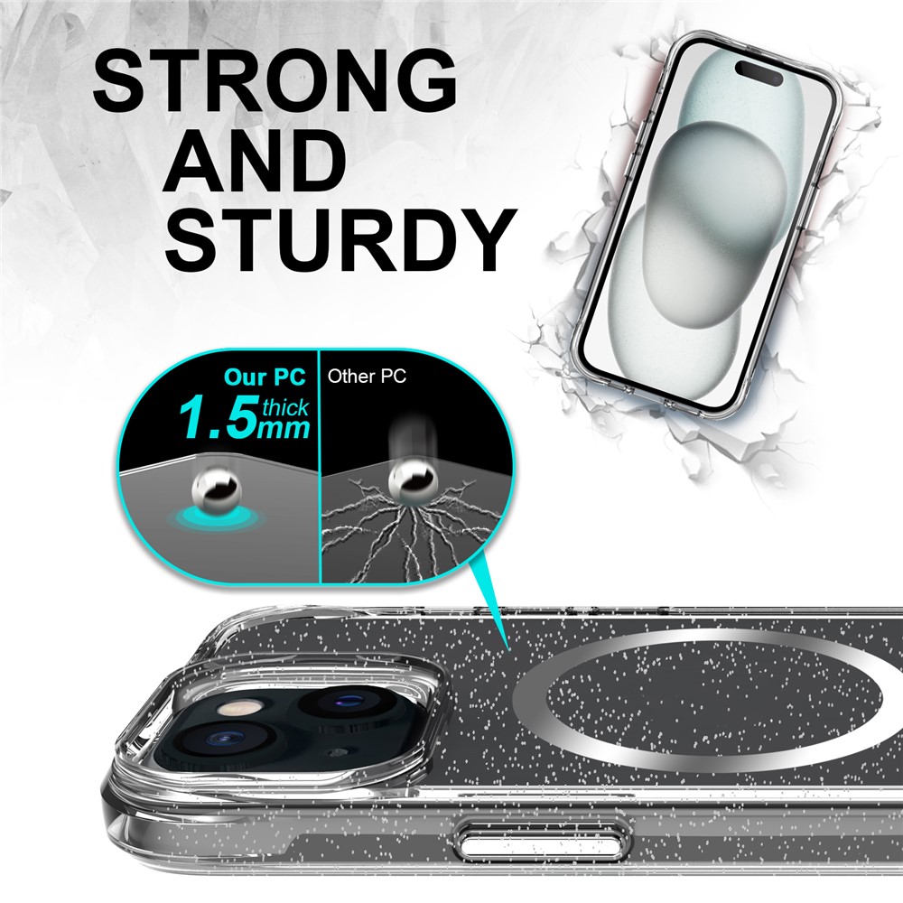 Bulk Purchasing For iPhone 15 Plus Case Compatible with MagSafe Starry Glitter PC + TPU Phone Cover - Silver $17.23