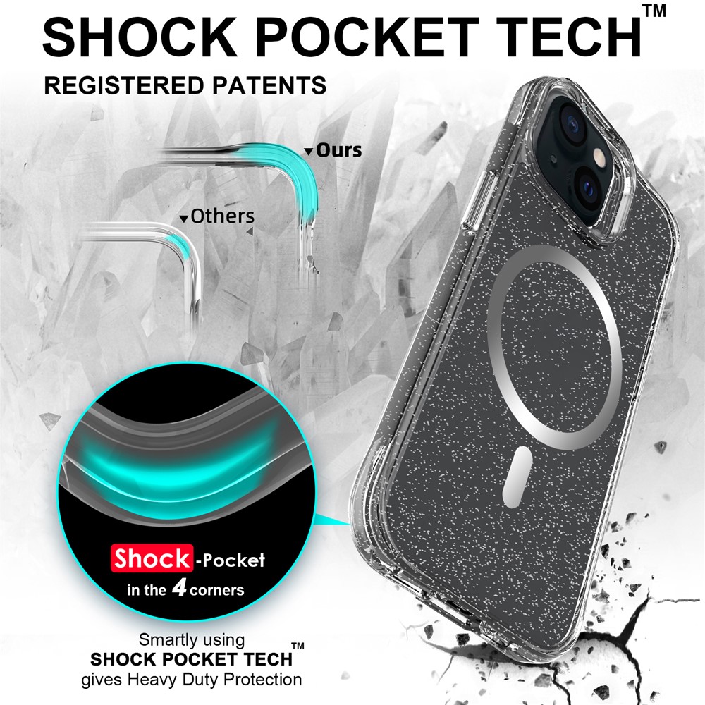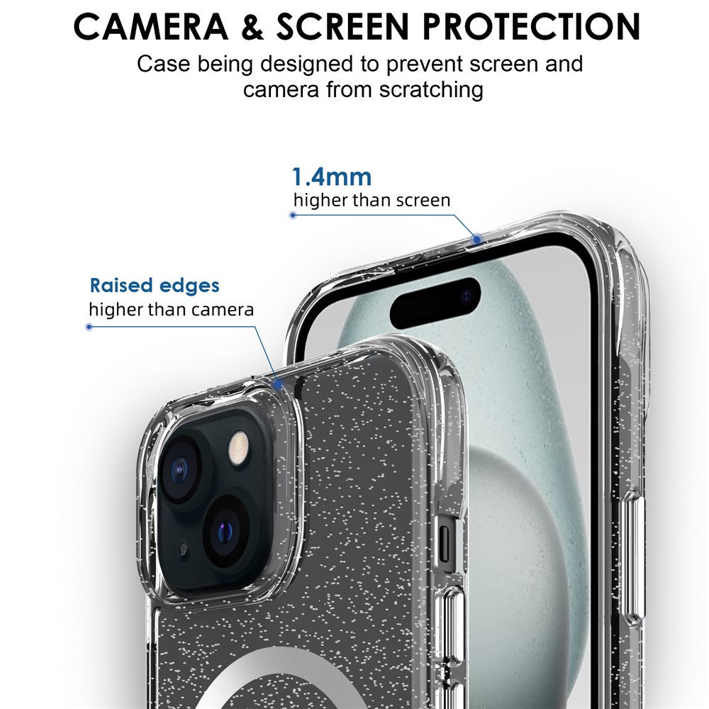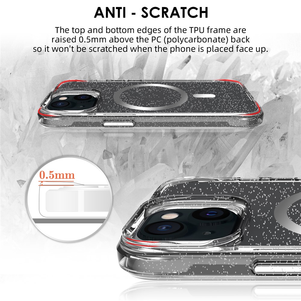 • Stylish Glitter Finish Crystal-clear case infused with glitter powder, adding a sparkling starry look while maintaining full transparency.