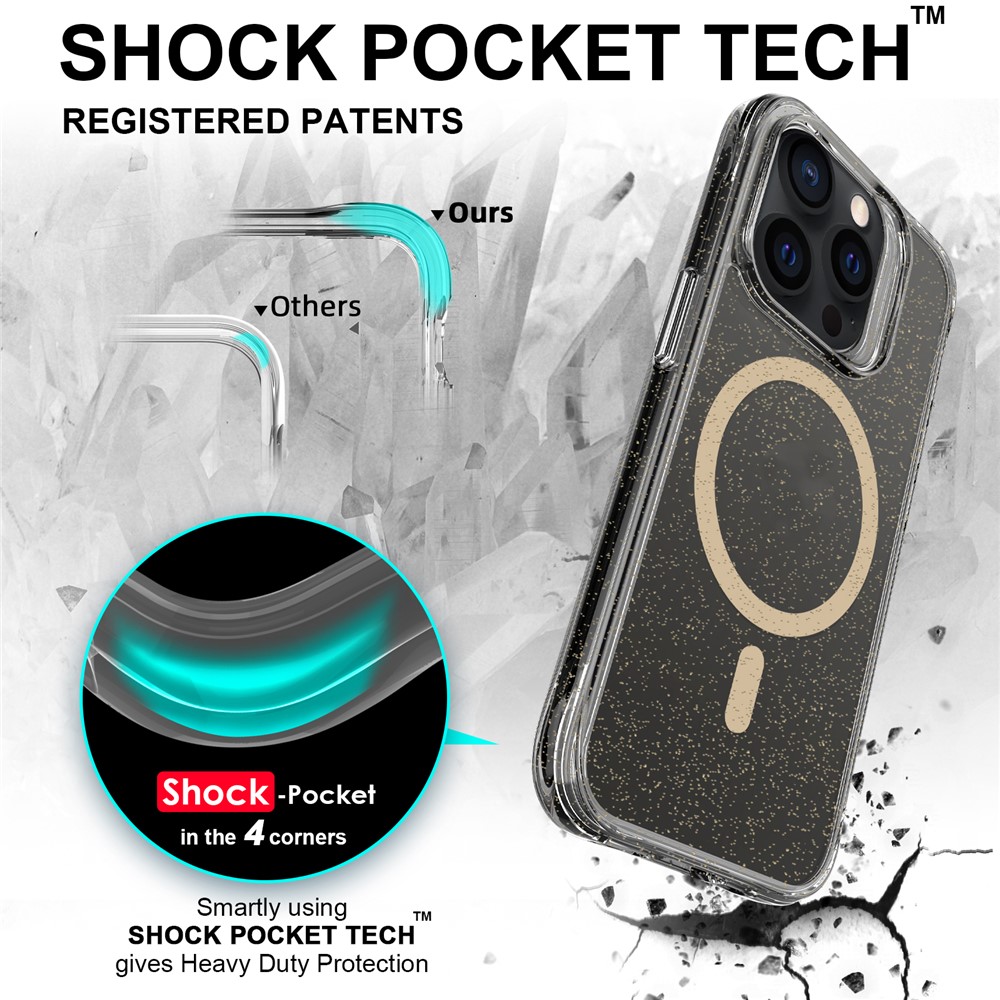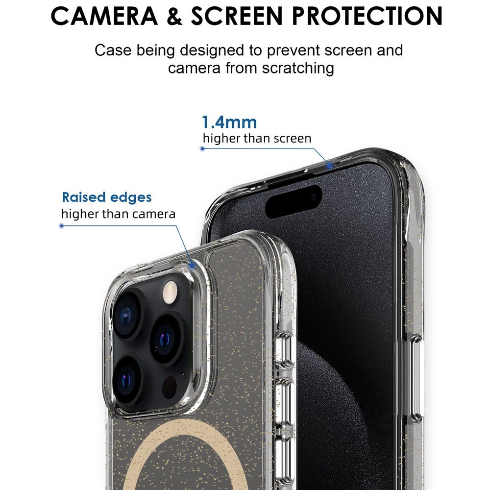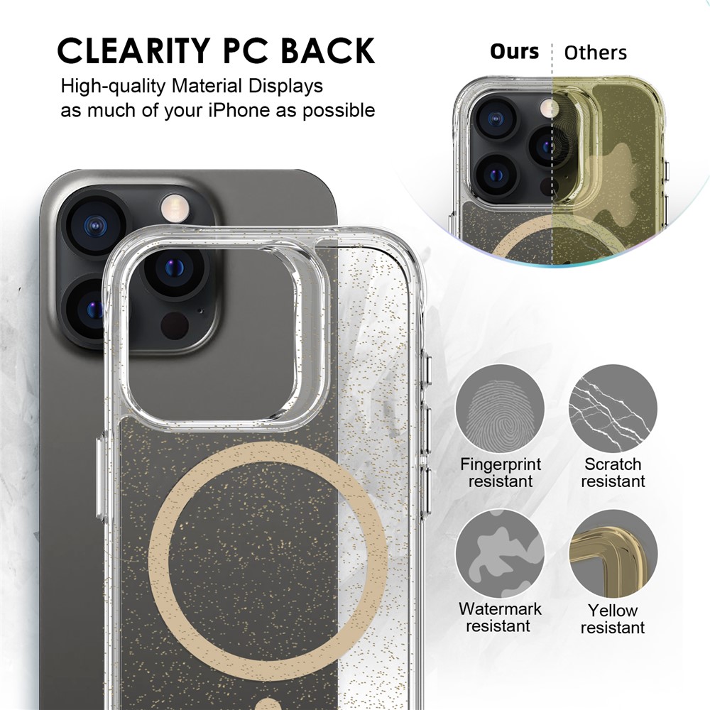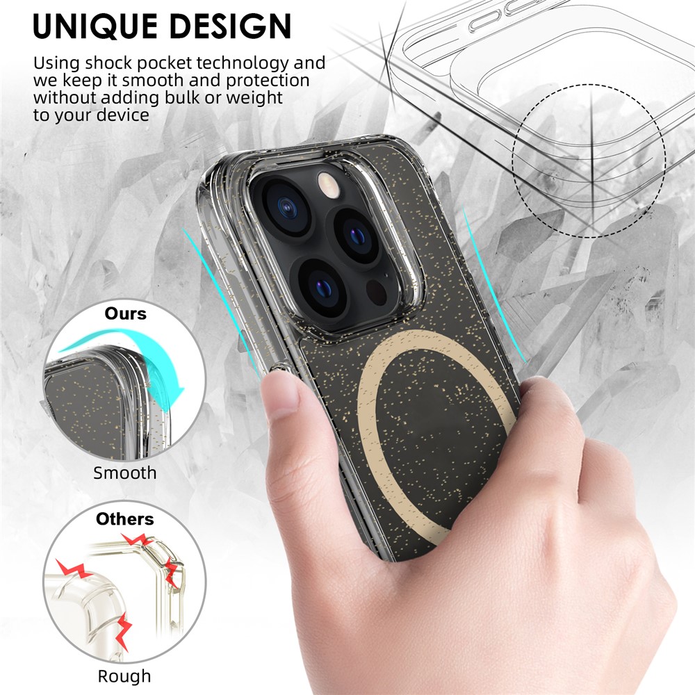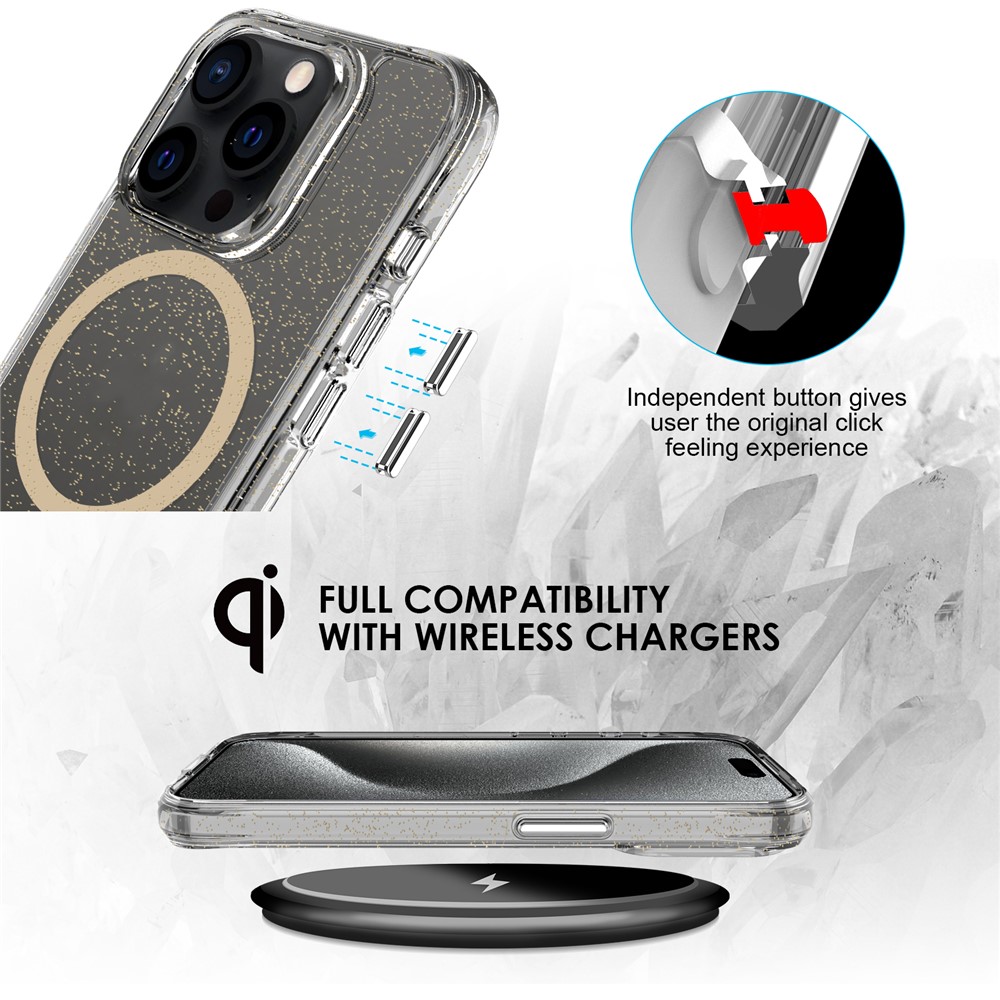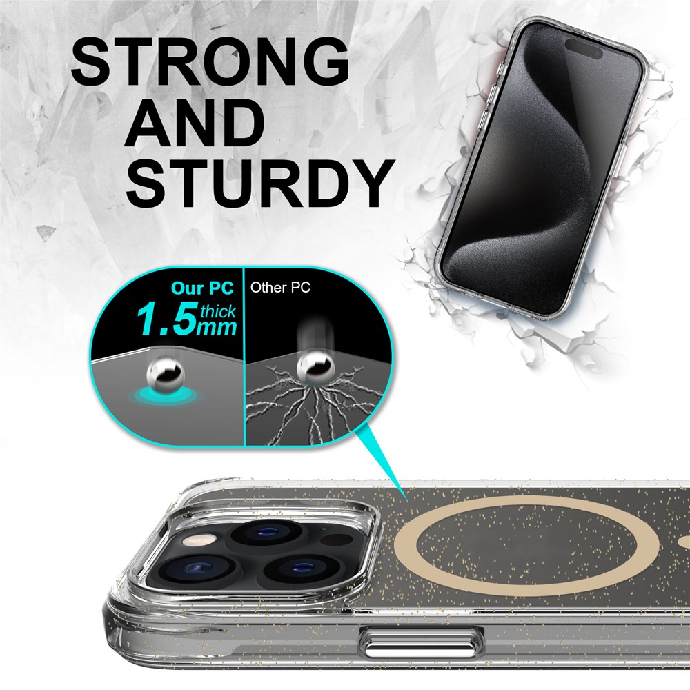- Stylish Glitter Finish Crystal-clear case infused with glitter powder, adding a sparkling starry look while maintaining full transparency.